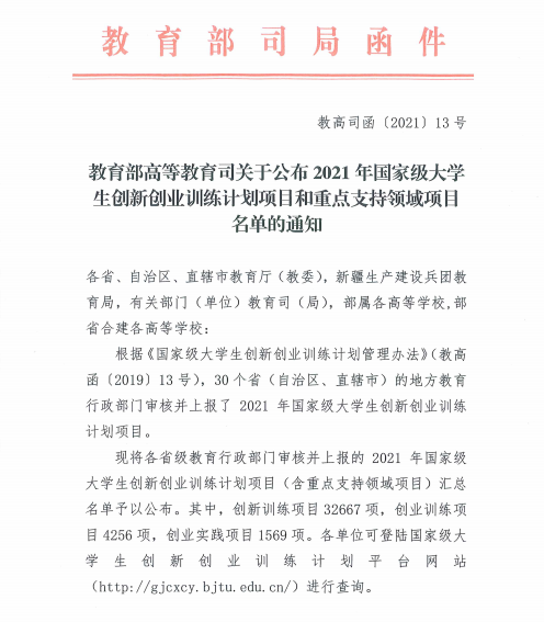 根据《国家级大学生创新创业训练计划管理办法》(教高函[2019]13号)《教育部高等教育司关于报送2021年国家级大学生创新创业训练计划立项项目的通知》和湖南省教育厅《关于报送2021年度大学生创新创业训练计划项目的通知》,我院积极组织动员师生申报2021年度的大学生创新创业训练计划项目。经过学生团队申请、院校两级评审、遴选公示环节,由我院教师担任指导老师的大学生创新训练计划项目获得省级以上立项16项,立项数位居全校前列。其中国家级立项7项,创我院历史新高。
