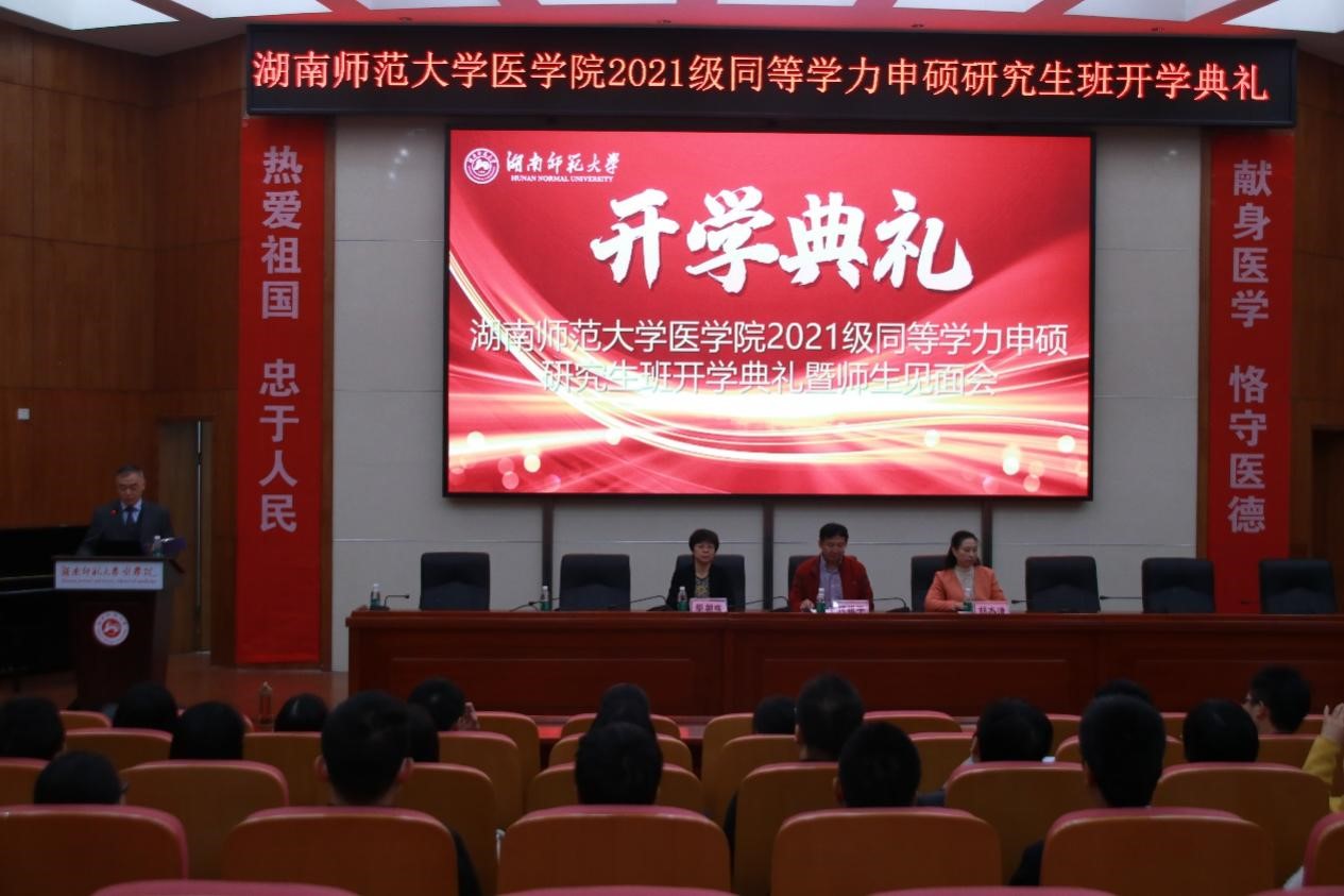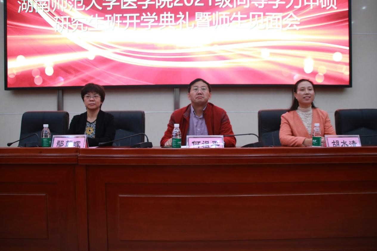 10月16日上午,我院2021级同等学力申硕研究生班开学典礼暨师生见面会在仁医楼报告厅隆重举行。英国365集团研究生院副院长胡水清、我院院长何祖平、我院党委书记鄢朝晖、药学系主任冯星以及多名硕士研究生导师和行政教辅老师受邀出席。开学典礼由药学系冯星教授主持。