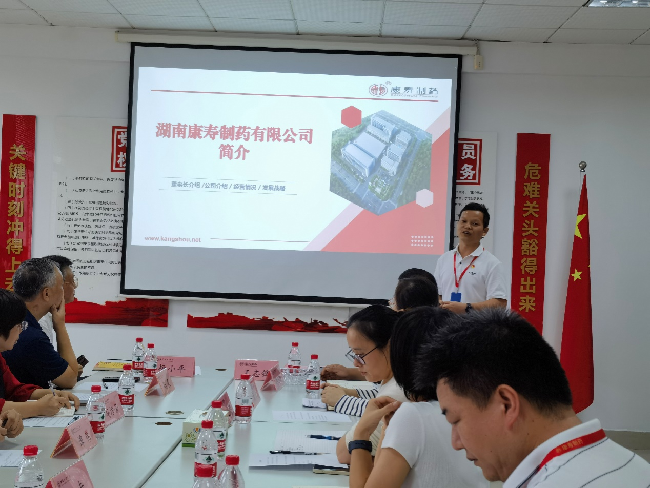 康寿制药党支部书记王志锋对此次表示我部药学师生党员的到来表示热烈欢迎。他从创始人经历、企业发展历程、经营理念、业态范围、业务规划及规模等方面介绍了企业的基本情况。随后,他分享了公司支部党建工作中的宝贵经验,指出要牢牢把握重大节点与党史教育紧密结合起来,举办“一会一课一片一实践”活动,让党员更好地发挥作用,努力把骨干发展成党员,把党员培养成骨干。