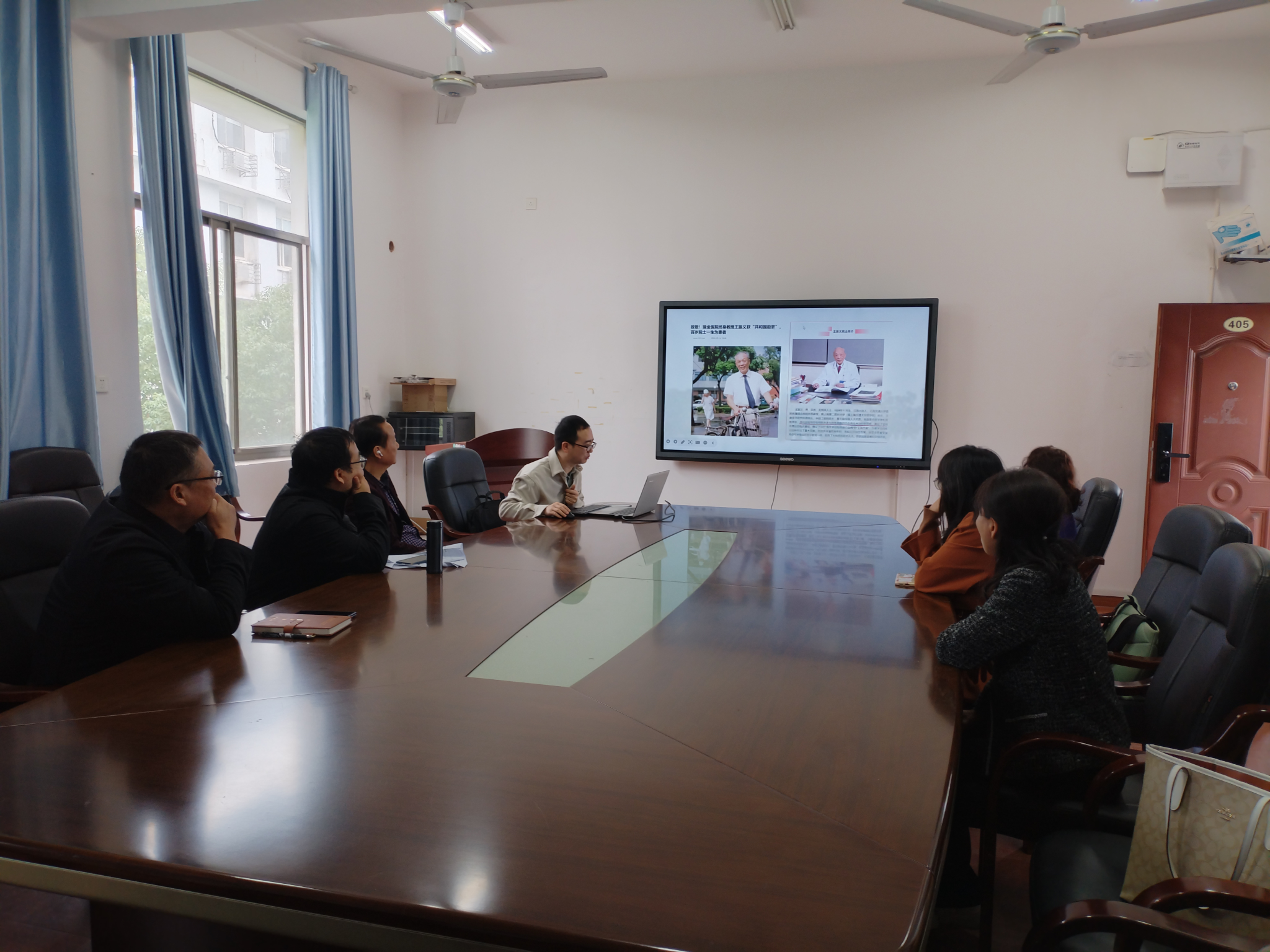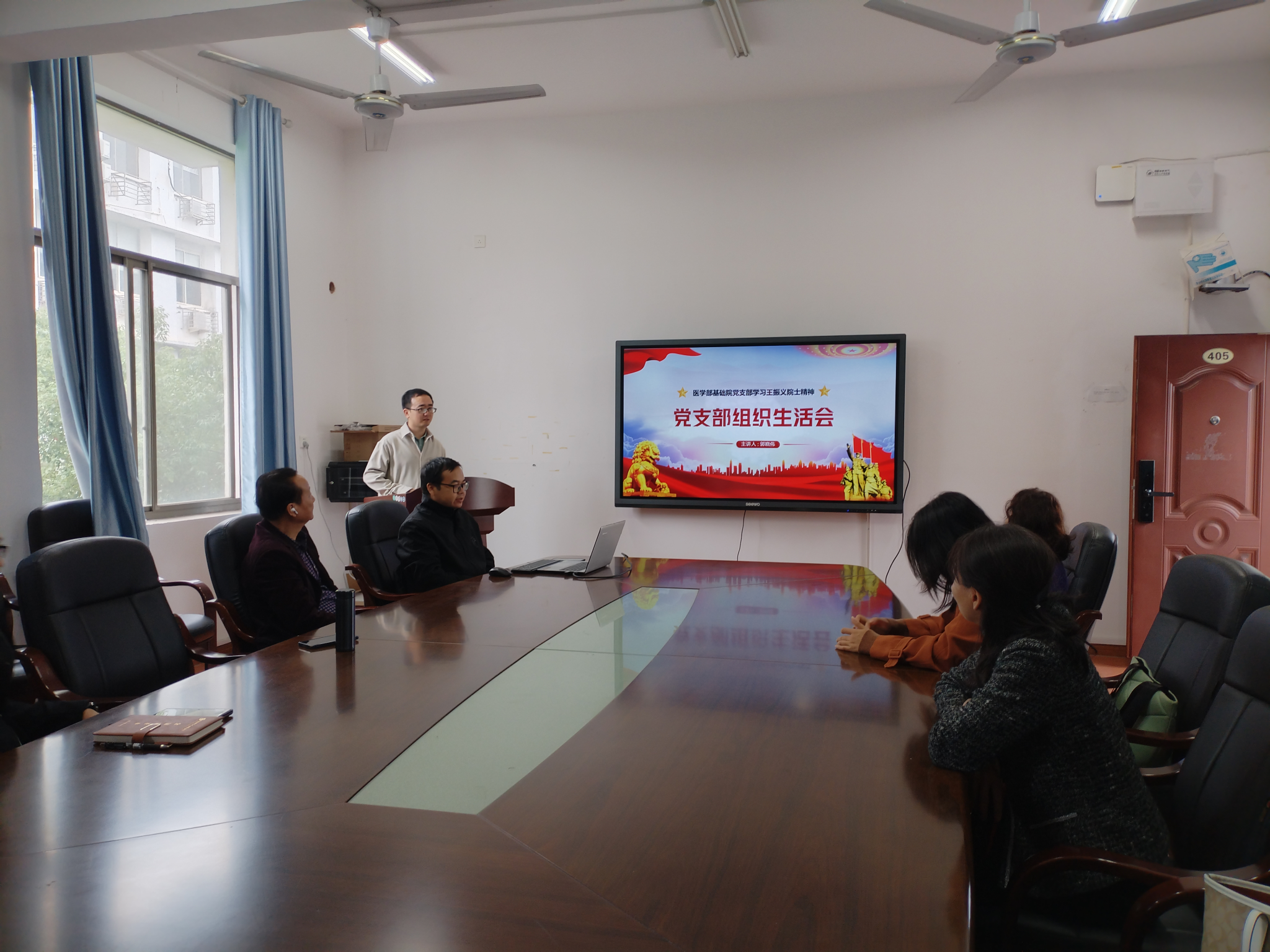 党支部组织委员郭晓伟,以学习“共和国勋章”获得者王振义院士, “人民医护工作者 ”国家荣誉称号获得者路生梅先进事迹为题,做了一场精彩的微党课。