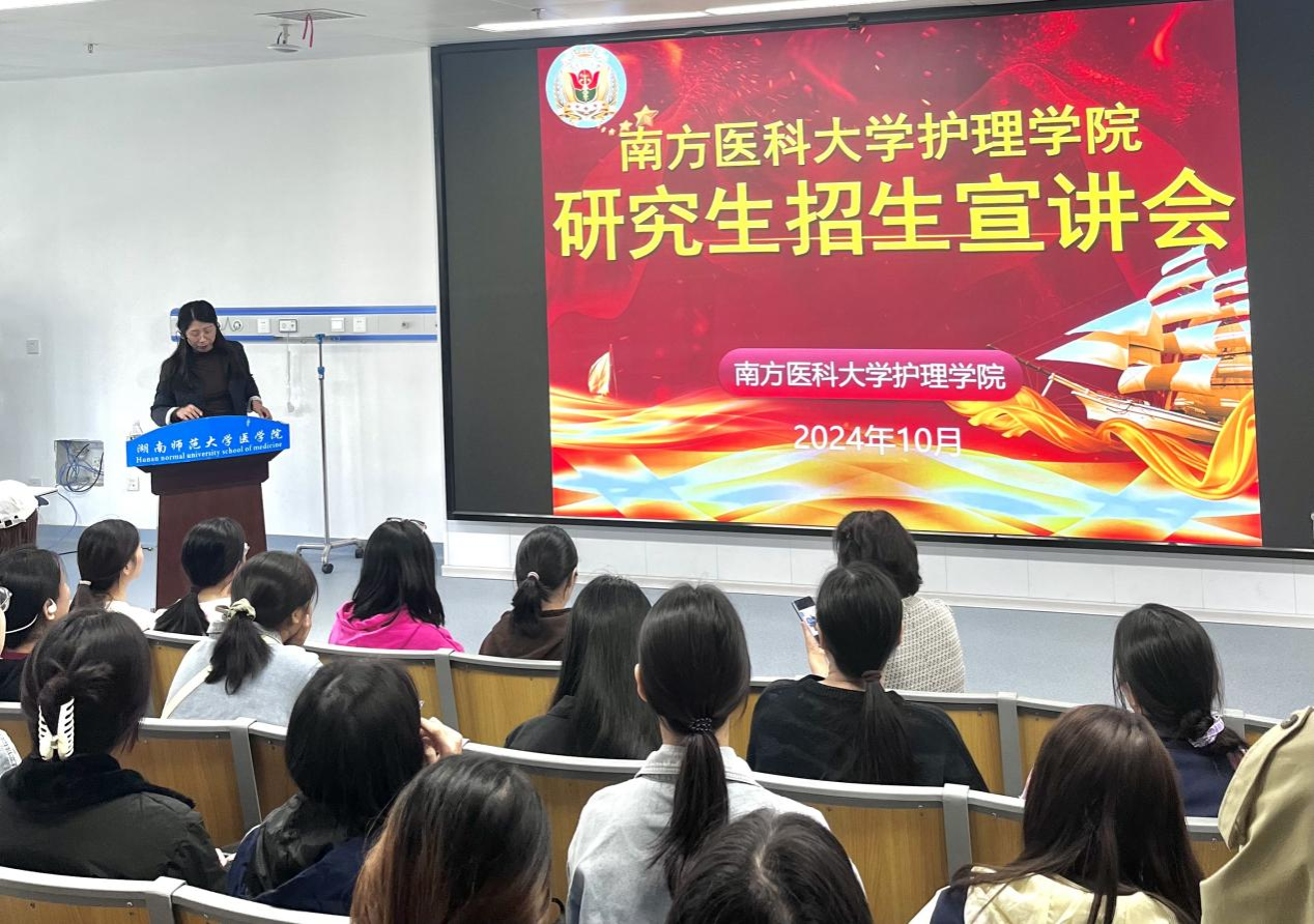 10月23号上午,南方医科大学护理学院谢日华教授及徐靖雯老师来我部护理学院于综合楼312教室进行研究生招生宣讲。