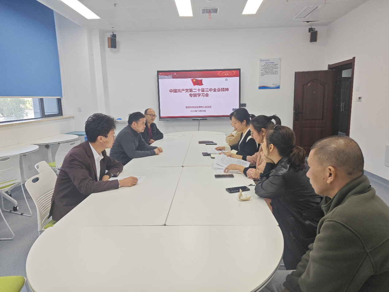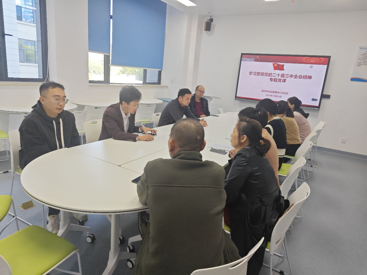 2024年10月24日,医药学实验管理中心党支部在综合楼226教室召开中国共产党二十届三中全会精神专题学习会,会议由支部书记全梅芳主持,支部全体党员参加会议。