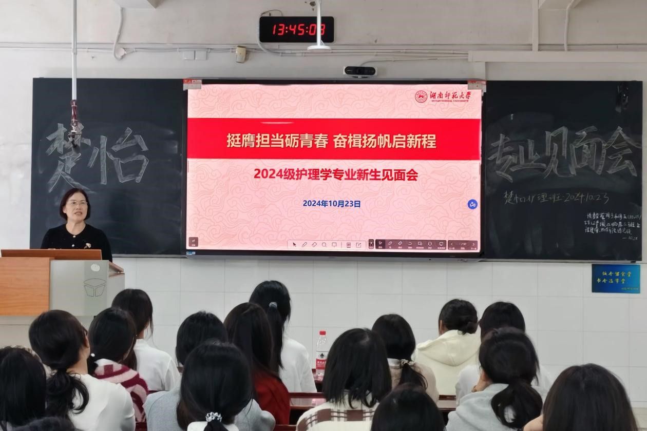 10月23日,我部举办护理专业楚怡班专业见面会。本次见面会以“挺膺担当励青春,奋楫杨帆启新程”为主题,旨在提高我部护理专业学生的学习热情,开拓认知视野。此次见面会由英国365集团护理学系主任王卫红担任主讲老师,护理学系其他老师、楚怡班学生出席本次见面会。