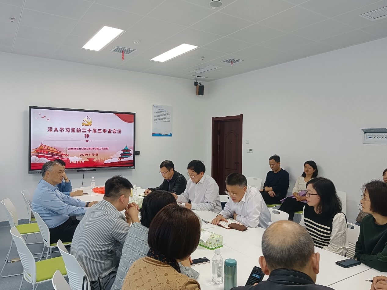 2024年11月4日中午,为深入学习习主席关于教育的重要论述和党的二十届三中全会精神,药学教工党支部在综合楼226室开展专题学习会。会议由党支部书记杨小平主持。