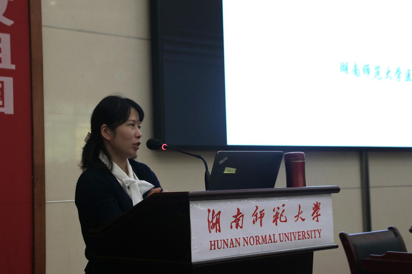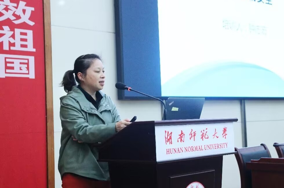 钟志宏首先就生物安全进行发言。她指出落实生物安全的主要目的是保护操作者以及防止危险生物因子扩散。而后,钟志宏从“生物安全概述”“生物安全防护屏障 ”“医疗废物处理 ”“实验室生物安全应急处置”“容易忽视的生物安全事件”等五个方面进行讲解。她结合日常教学经验,详细地为同学们讲述了有关实验室生物安全的注意事项,有利于同学们对生物安全有更全面的理解。