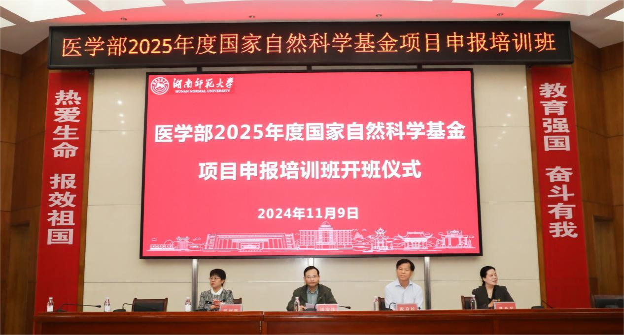 潘安练对我部在全校率先召开基金培训会给予充分肯定。他强调国家自然科学基金等国家项目的申报实施至关重要,关乎单位和个人发展。希望我部师生、附属医院、省内兄弟院校和医院的老师们利用这次宝贵的交流学习机会,联合学校高水平科研平台和医院优质临床资源,开展高水平原创研究,推动医学基础理论学科建设和医疗水平高质量发展,为打造健康中国、健康湖南贡献智慧和力量。
