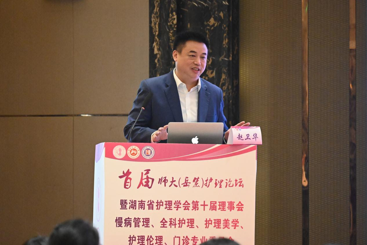赵卫华书记对各位领导、嘉宾、专家学者的到来表示热烈的欢迎和诚挚的感谢。他指出,护理,作为医疗卫生事业的重要组成部分,在医疗保健体系中扮演着至关重要的角色。护理人才培养对个人、医疗系统、社会乃至整个国家的发展都有着深远的影响。护理学院的成立,是我校在医学教育领域的重要里程碑,标志着我校对医学教育科研的管理体制更加严密,对医学教育和医学科研的投入更加聚焦。这不仅有助于培养更多高素质的护理学人才,更为推动健康中国、健康湖南贡献智慧和力量。