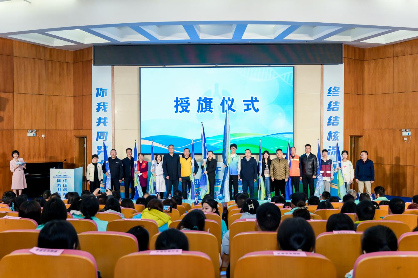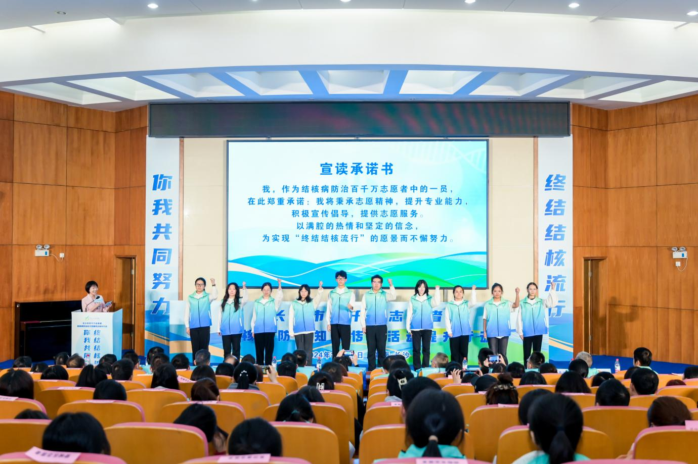 来自我部的志愿者们现场郑重承诺将以满腔的热情和坚定的信念,为实现“终结结核流行”的愿景而不懈努力。现场还举行了“百千万志愿者”授旗仪式。领导们将象征着结核病防治使命与责任的旗帜传递给志愿者代表队伍,不仅是对志愿者们辛勤付出的肯定,更是对未来结核病防治工作的展望。来自长沙市9个区、县(市),代表着不同行业和人群的志愿者们宣读倡议书,倡导全社会关注结核病防治,为终结结核流行贡献更多力量。