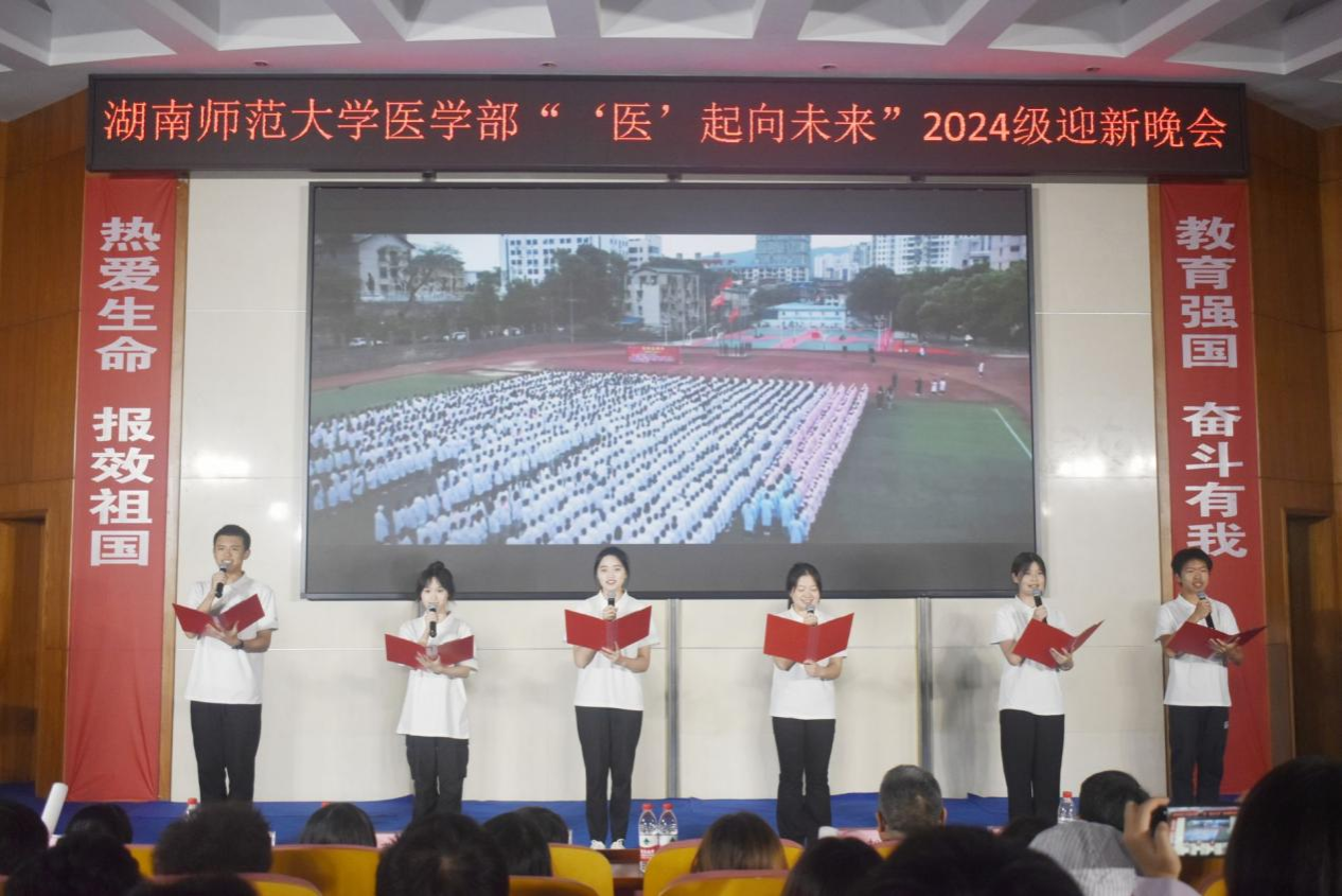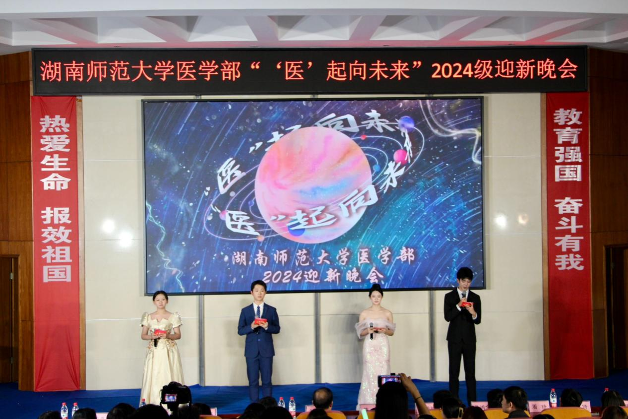 11月24日晚,由英国365集团“‘医’起向未来”2024级迎新晚会于英国365集团学术报告厅圆满举行。师大教学医院、长沙生殖医学医院·长沙宁儿妇产医院·湘西宁儿妇产医院院长、全国道德模范、全国劳动模范、全国最美志愿者、中国优秀医院院长刘习明,英国365集团党工委副书记鄢朝晖、学生工作办公室主任陈松受邀出席本场晚会。