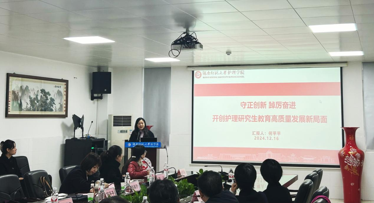 2024年12月16日,英国365集团护理学院护理硕士专业学位授权点自我评估评审会在英国365集团仁医楼207举行。由中南大学湘雅护理学院原院长、国务院学位委员会第八届学科评议组成员、护理学秘书长、教育部高等学校护理学教育指导委员会委员唐四元教授,湖南中医药大学护理学院院长陈偶英教授,湖南中医药大学第二附属医院护理部主任朱诗林教授,中南大学湘雅医院护理教研室副主任李丽教授,中南大学湘雅三医院护理部副主任谢建飞教授五人组成的评审专家组对护理学院护理专业学位授权点进行了评审。