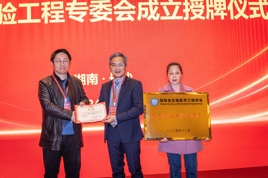 彭绍亮为医学检验工程专业委员会授牌和授予证书。