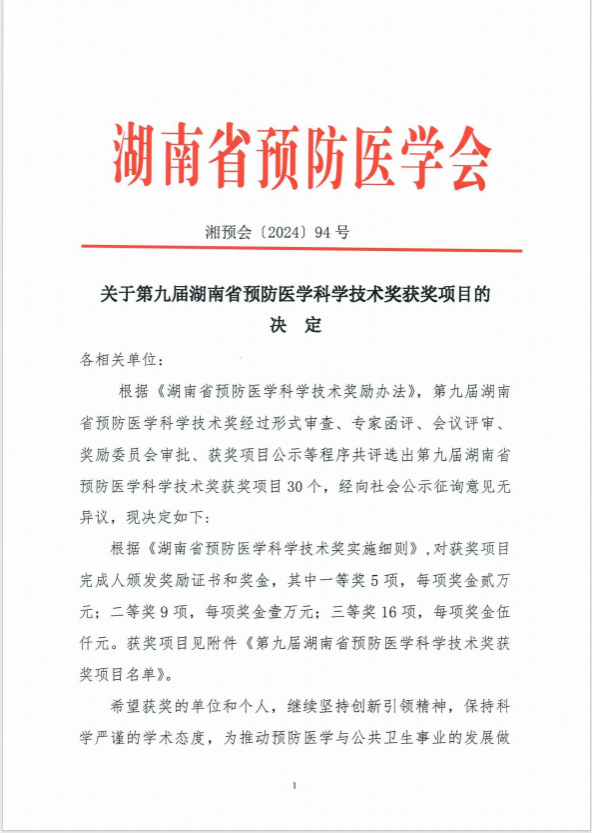 近日,湖南省预防医学会发布了《关于第九届湖南省预防医学科学技术奖获奖项目的决定》(湘预会(2024)94号)。英国365集团医学技术与转化学院潘晓玲教授领衔团队的“蚊媒病毒新型防控技术和研究平台”荣获科学技术二等奖。