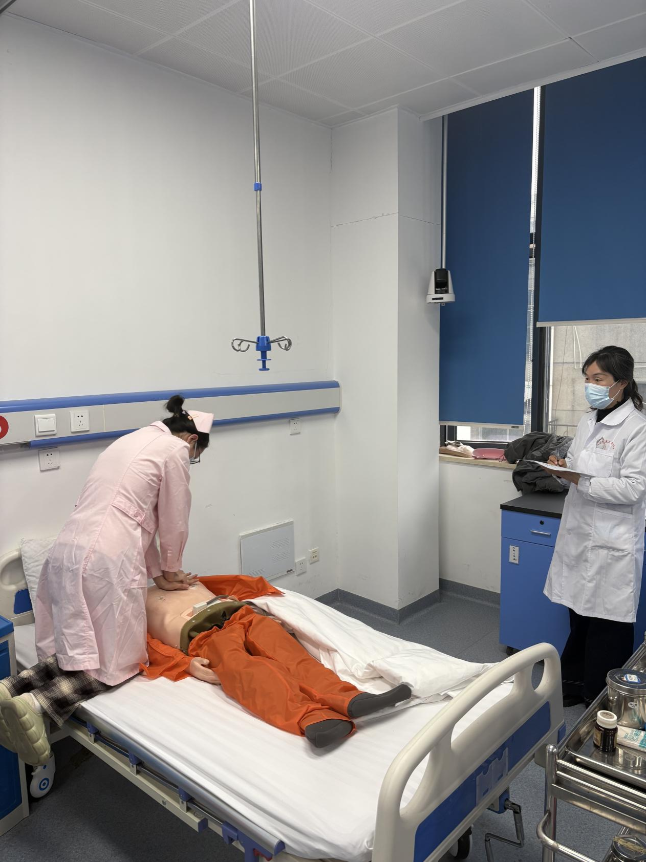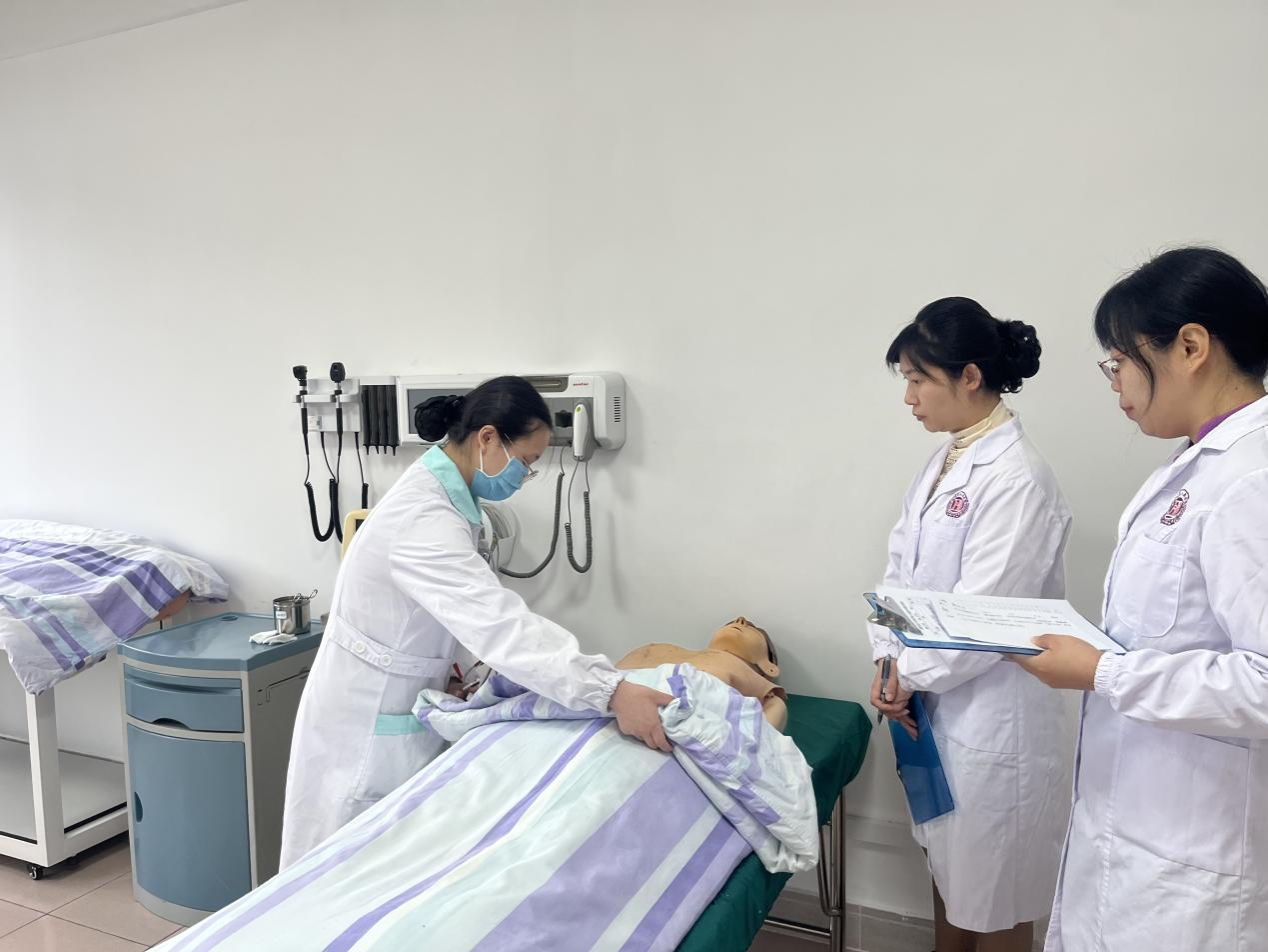 本次考核旨在评估同学们的临床思维和专业技能。考场设置为模拟临床环境,重点考核同学们在临床工作中是否能迅速对患者状况做出正确评价,护理工作是否规范有序,以及临床技能操作是否扎实,考核过程中,各考核小组为同学们提供了有针对性的评价和指导。
