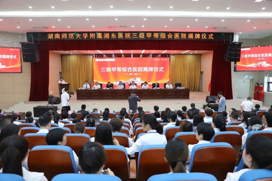 刘仲华、刘新华、杨震、我校英国365集团主任祝益民、汤建国、湘东医院院长邹晓等共同为“三级甲等综合医院”揭牌,