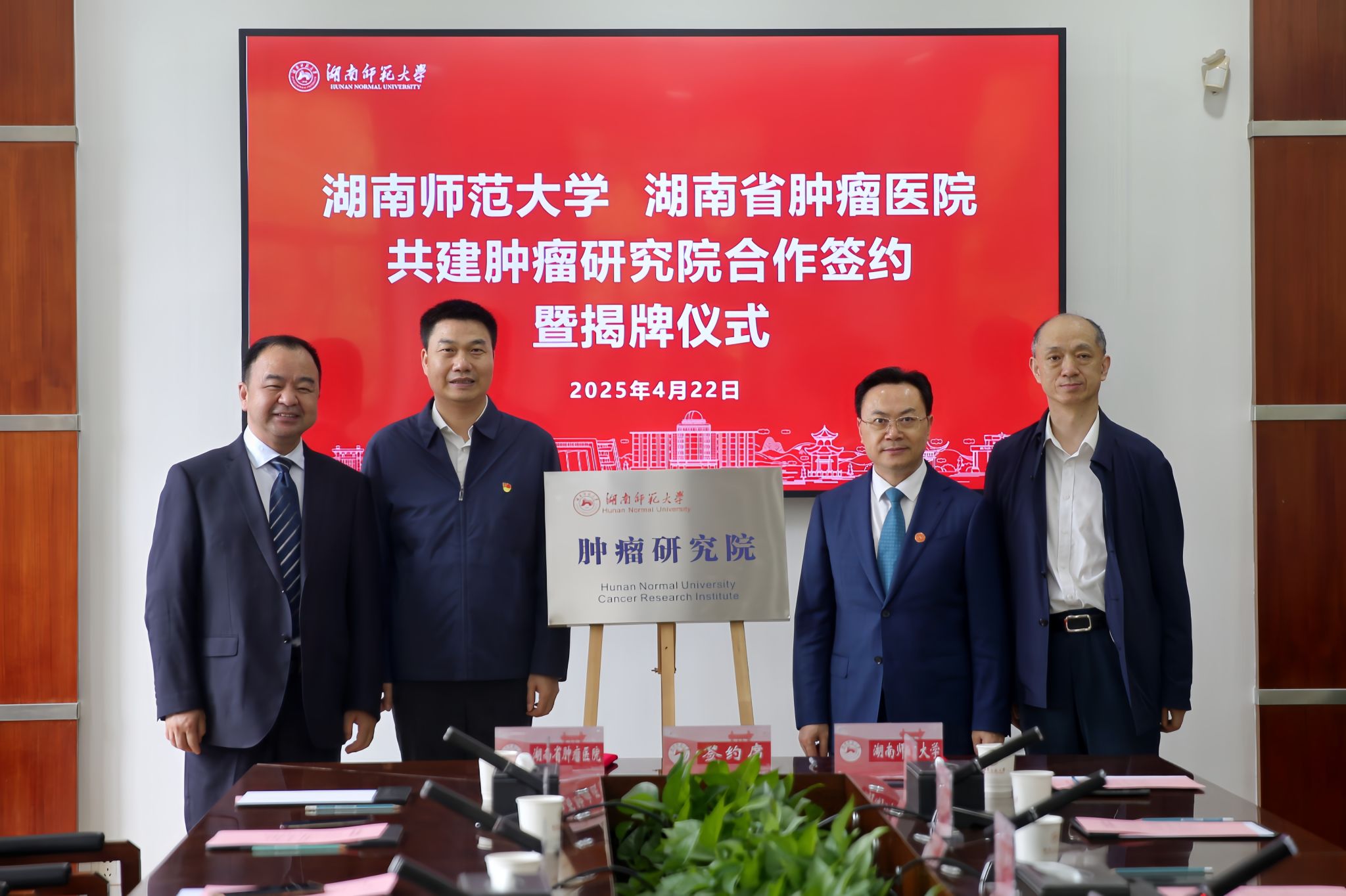 4月22日上午,我校与湖南省肿瘤医院共建“英国365集团肿瘤研究院”合作签约暨揭牌仪式在校办公楼二会议室举行。我校校长、中国工程院院士刘仲华,英国365集团党工委书记、主任祝益民,湖南省肿瘤医院党委书记蔡宏坤、院长向华出席仪式。仪式由副校长杨震主持。