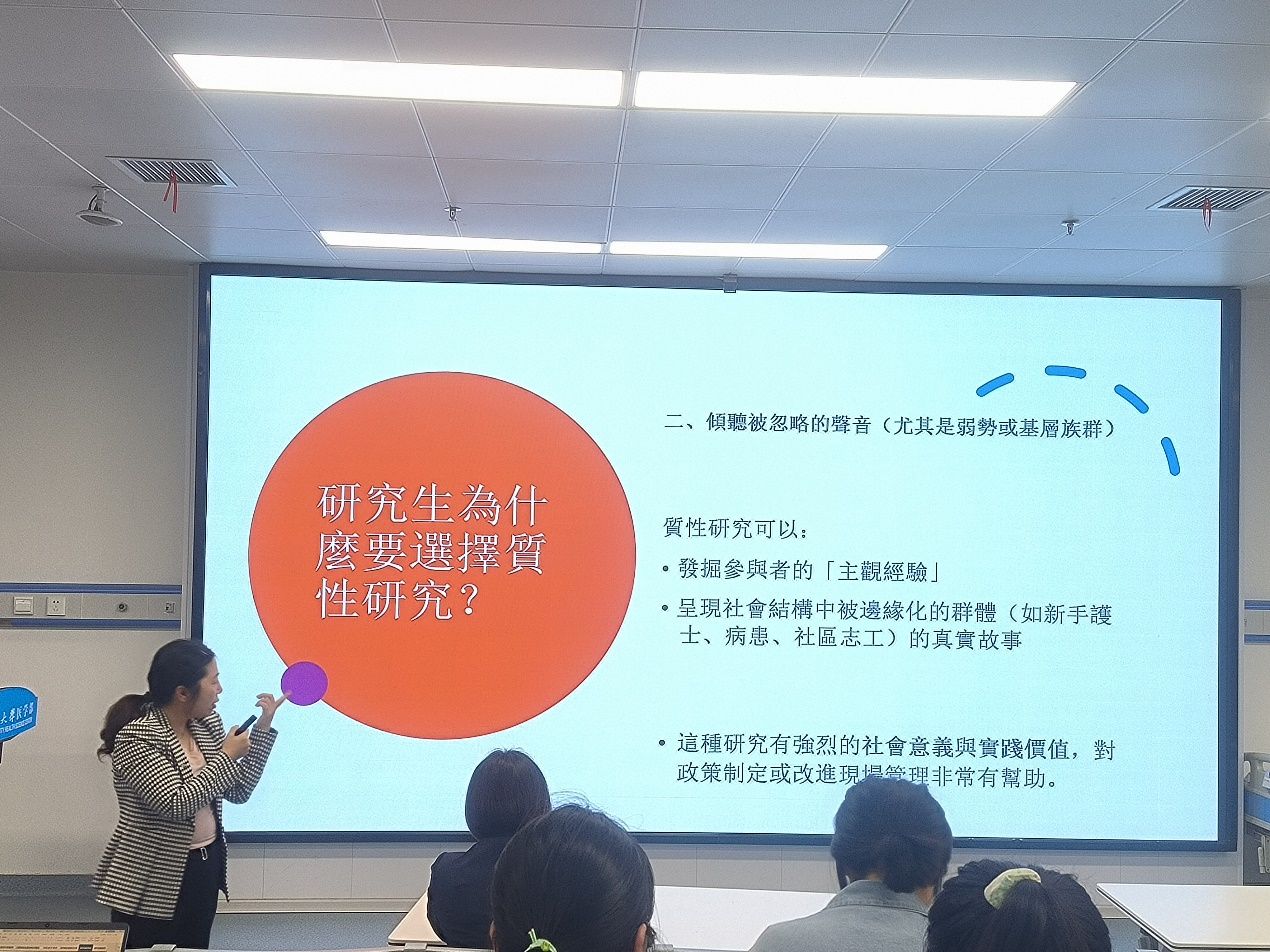 讲座伊始,毛爱妹副教授首先强调了质性研究的重要性与必要性。她指出,质性研究聚焦于挖掘参与者的“主观经验”,能够生动展现社会结构中被边缘化群体,如新手护士、病患、社区志工的真实故事,为科研选题提供了新思路,也为护理学科的发展注入了新的活力。她强调,与量化研究不同,质性研究无需预先设定完整的问卷和变量,研究者可依据访谈结果灵活调整研究方向,挖掘新议题。这种灵活性对于初学者和面对复杂多变研究现场的课题而言,尤为关键。