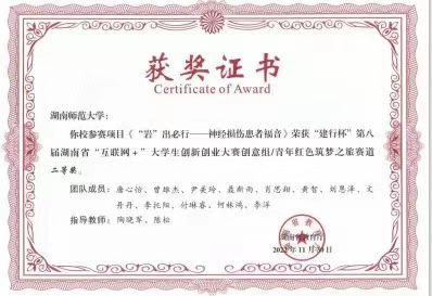 其负责指导“爬岩红”项目更是亮点突出,该项目以地方特色资源为依托,致力于挖掘爬岩红的药用价值及产业化应用,陶晓军副教授2022年11月至2024年11月挂职郴州市桂东县科技副县长,积极推动该项目的研发和桂东县民间中药爬岩红的种植技术。团队以爬岩红为核心,研发出治疗脑梗塞后遗症引发神经性疼痛的通脑复神颗粒,以及治疗坐骨神经痛的中药贴剂。凭借这些成果,“岩草医药-神经功能恢复领域的开拓者”和“一‘岩’为定,神经损失患者的福音”两个项目两次获得全国大学生生命科学竞赛一等奖,还荣获全国大学生基础医学创新研究暨实验设计论坛总决赛优秀成果国家级铜奖、湖南省第九届“挑战杯”大学生创业大赛银奖、第八届湖南省“互联网+”大学生创新创业大赛创意组及青年红色筑梦之旅赛道二等奖等8项国家级省级奖项。该项目被新湖南、人民日报、潇湘晨报等多家媒体报道,产生了良好的社会示范效应。