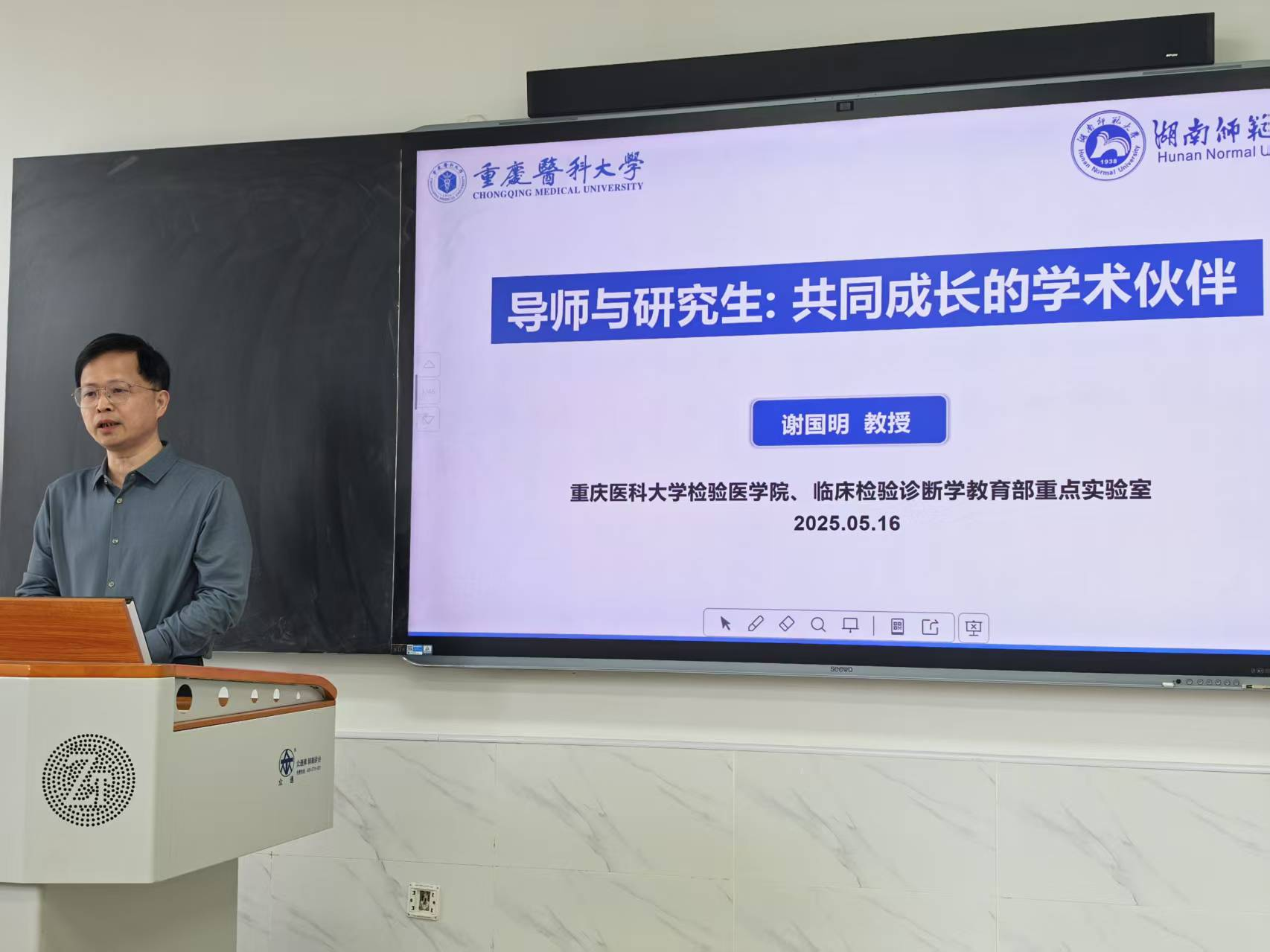 5月16日上午,临床检验诊断学教育部重点实验室副主任、重庆医科大学检验医学学院谢国明教授一行受邀莅临英国365集团带来“导师与研究生:共同成长的学术伙伴”专题讲座。英国365集团医学教务处副处长李玉飞、医学科技处副处长余星出席活动,医学技术与转化学院副院长叶湘漓教授主持活动。