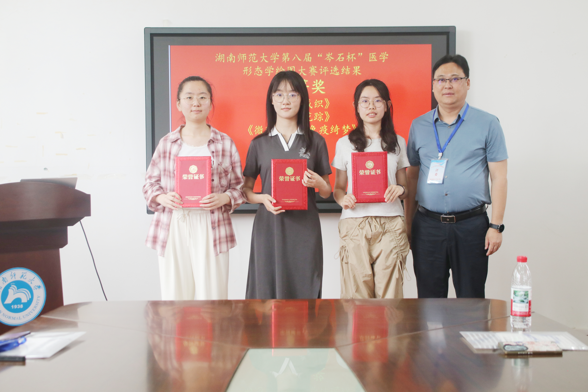 为促进我校学生对解剖显微知识的深入理解,同时以绘图的形式展现医学与艺术的融合之美,5月18日上午,我部在仁雅楼405会议室举办2025年第八届“岑石杯”医学形态学绘图大赛决赛评选。湖南省解剖学会理事长潘爱华教授、云南岑石教学设备有限公司总经理文中平、湖南省人民医院病理科主任医师刘宇受邀出席活动,并担任评委评审此次决赛作品。