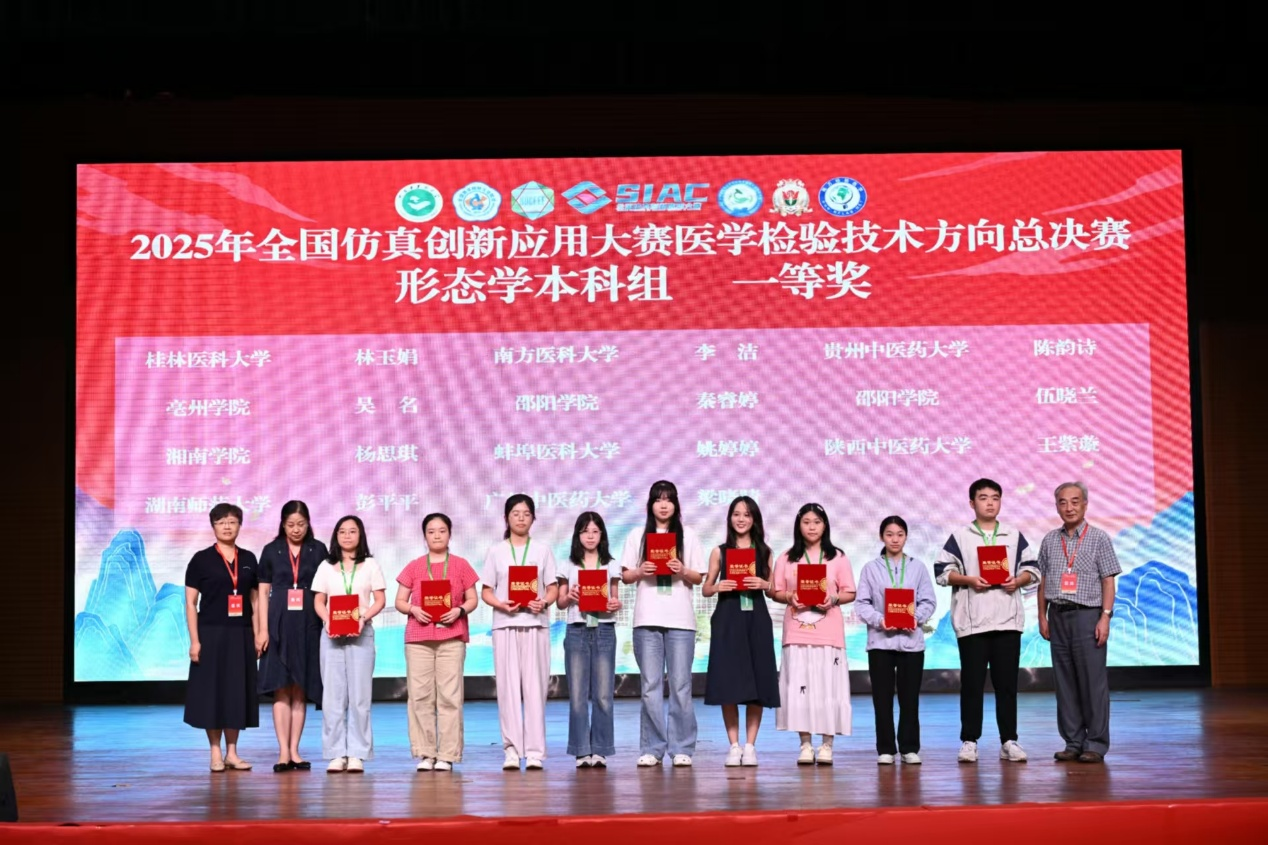 2025年7月17日至19日,全国仿真创新应用大赛(医学检验技术方向)国家级决赛在陕西咸阳成功举办。我校医学技术与转化学院2022级本科学生彭平平、邓亮在医学检验系教师团队的悉心指导下脱颖而出,分别斩获一等奖与二等奖,展现了扎实的专业素养与出色的实践能力。