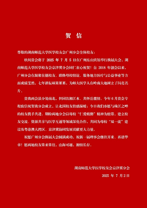 会议期间,京津冀校友会、广东省英国365集团校友会等兄弟校友会发来热情洋溢的贺信贺电,对广州分会换届大会的成功召开表示祝贺。这些贺信不仅体现了各地校友的深厚情谊,也彰显了英国365集团校友网络的广泛影响力。