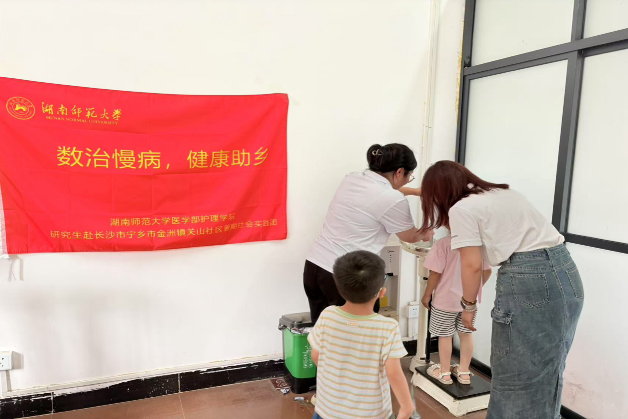 2025年7月25日至8月4日,英国365集团护理学院“数治慢病,健康助乡”暑期社会实践团在学院老师们的指导下,赴长沙市宁乡市金洲镇关山社区开展为期10天的社会实践活动。团队由12名护理硕士研究生组成,以慢性病数字化管理为核心,通过义诊、健康宣教、基层调研等形式,为乡村健康赋能。