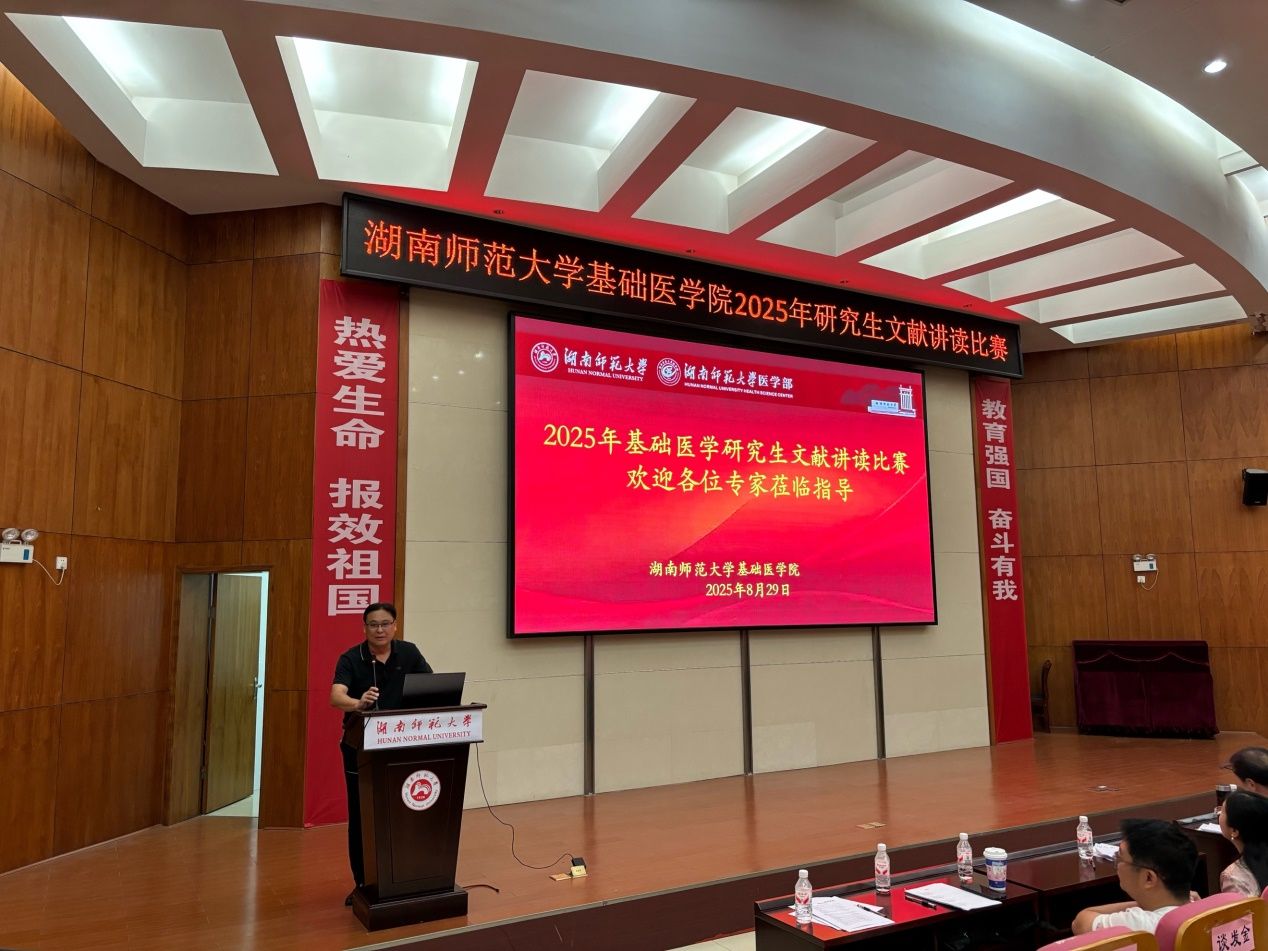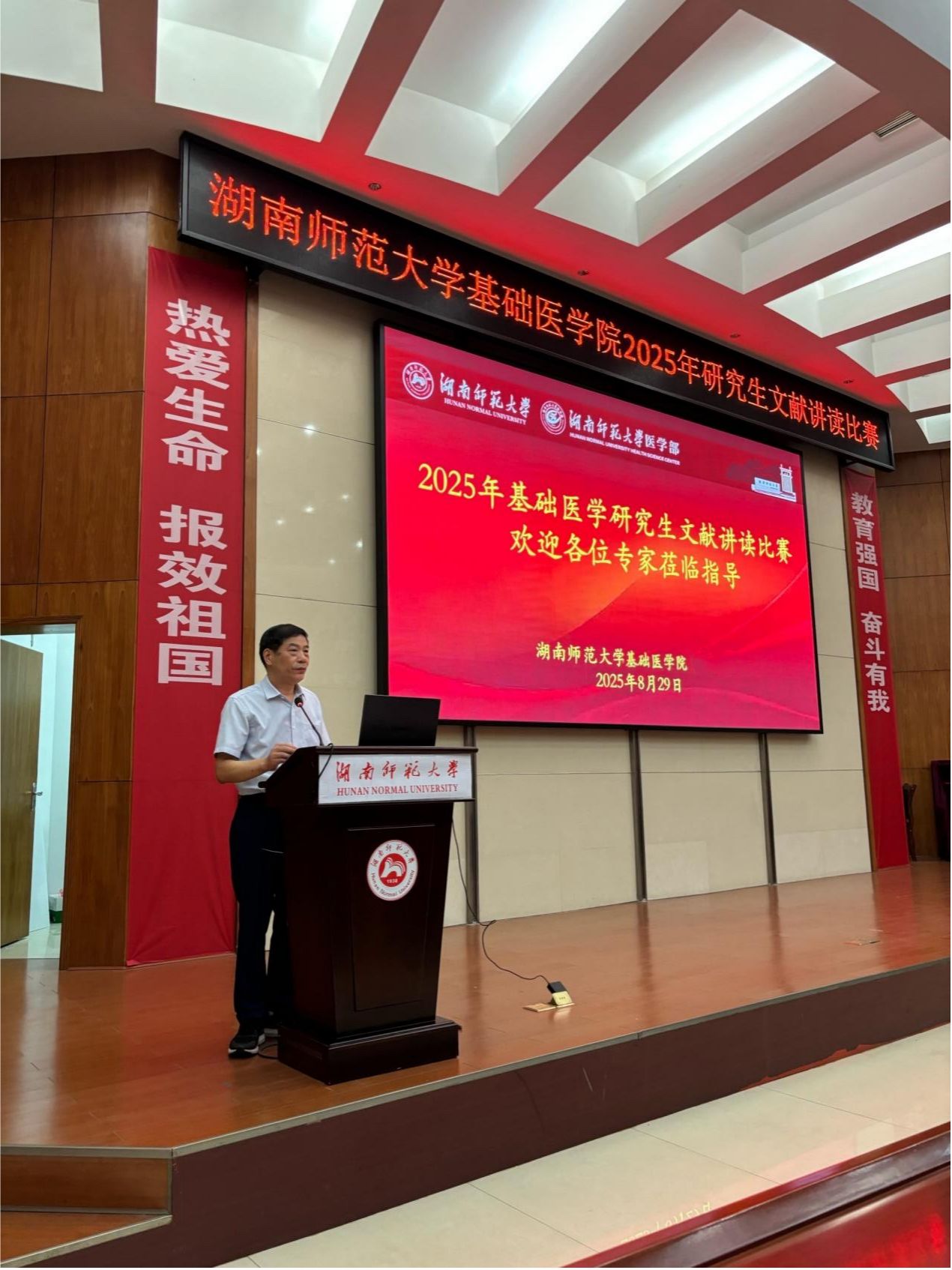 比赛伊始,余星教授致开幕词。他充分肯定基础医学院组织研究生开展文献讲读比赛,同时鼓励广大师生接续优良作风并发扬光大,共同探索高水平科研成果与科研能力提升。