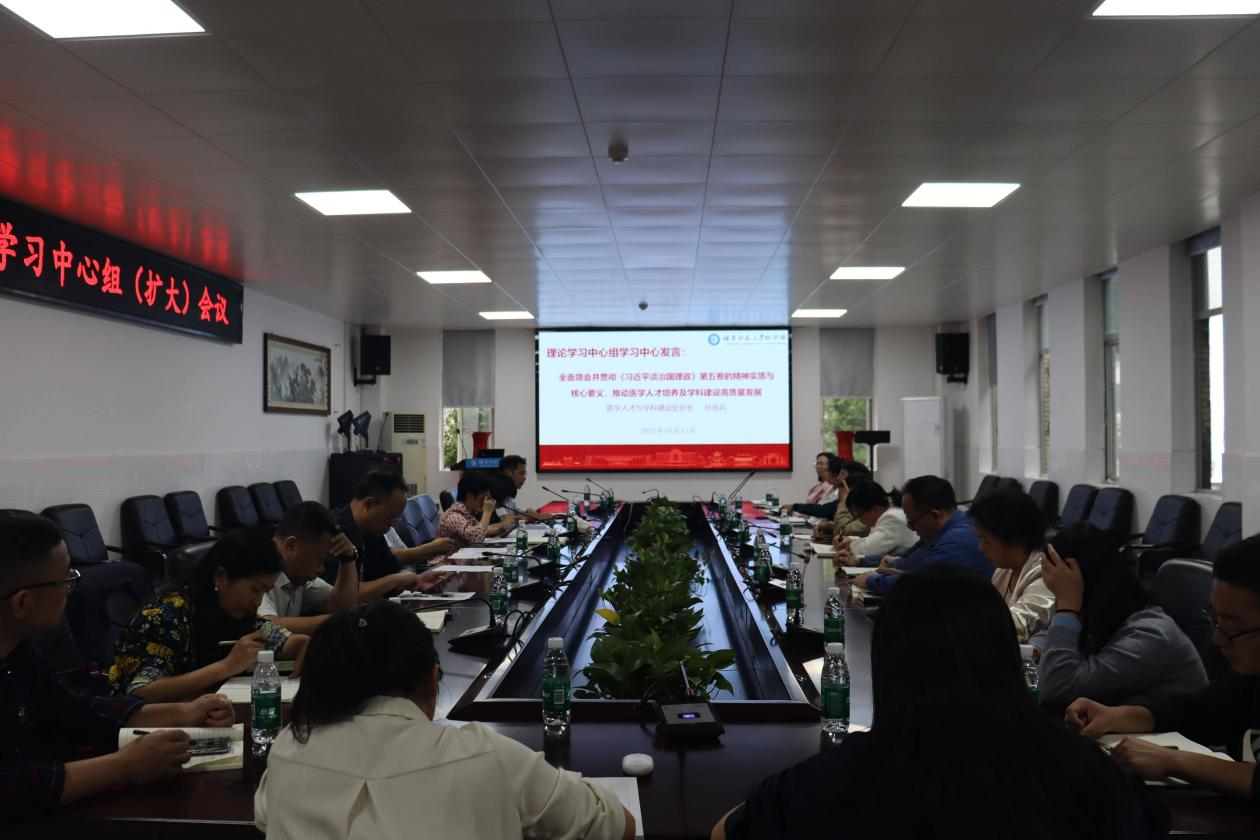 医学人才与学科建设处负责人结合工作实际,做了题为“全面领会并贯彻《习近平谈治国理政》第五卷的精神实质与核心要义,推动医学人才培养及学科建设高质量发展”的中心发言,提出将新思想转化为学科建设动能的三项举措:一是聚焦学科建设工作,深化评价机制并优化服务;二是完善人才引进与培育机制;三是强化博士后流动站体系构建及青年人才服务机制。