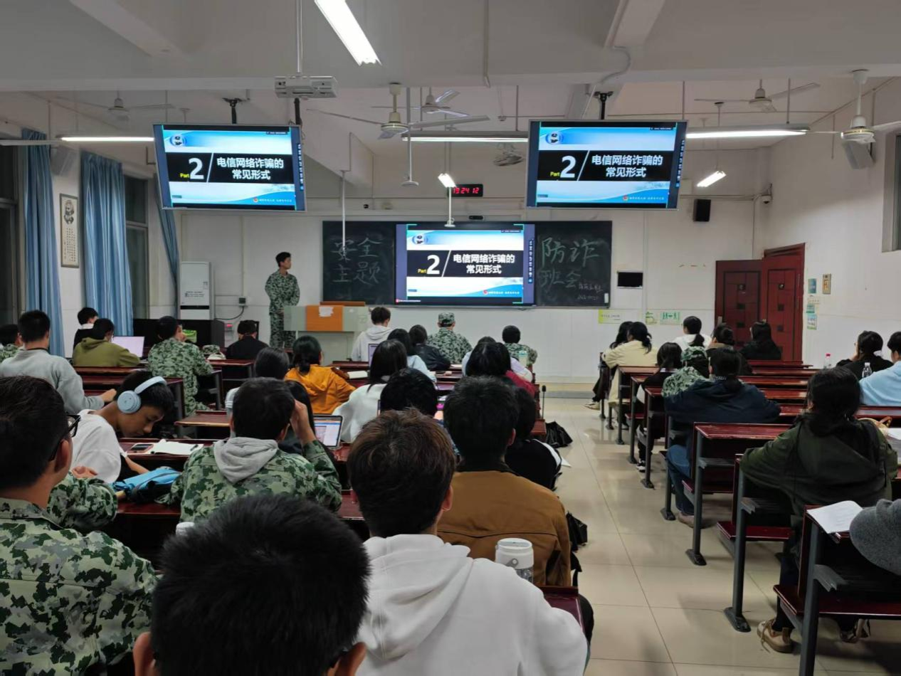 校保卫处副处长粟仁良围绕国家安全、反诈安全、消防安全、交通安全四大主题展开专业讲解。警示国家安全信息泄露的潜在危害;剖析校园场景下的常见套路,详解“五个五”防骗术的实操要点;通过现场演示灭火器操作,直观呈现消防安全防护重点;解析校园及周边交通隐患,讲解骑行、步行等场景的交通安全规范,理论结合实际助力新生系统掌握安全防护知识。郭铭伟总结提醒新生需将安全知识与校园生活深度结合,切实提高自我保护能力。