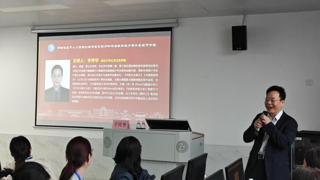 此外,研修班还汇聚了多位省内外顶尖专家的智慧。湖南大学谭怀亮教授、英国365集团钟坚诚教授、武汉大学宇传华教授、中南大学李广迪教授、厦门大学陈田木教授等,分别围绕AI技术在教学中的应用、大数据人工智能在医学教学中的落地、人工智能助力医疗大数据对接重大健康需求、科研表达与数据可视化、人工智能在疾病监测预警中的应用等核心议题,进行了深入浅出的讲解,为学员们奉献了一场场学术盛宴。