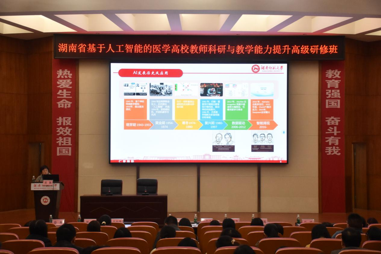本次高级研修班是湖南省应对全球人工智能技术浪潮、推动AI与医学教育科研深度融合的一项重要举措,旨在全面提升医学高校教师利用前沿技术赋能教学创新与科研突破的核心能力。课程自10月27日启动以来,便吸引了全省医学教育界的广泛关注和踊跃参与。研修班课程设计兼具科学性与前瞻性,内容覆盖AI理论、技术实践与行业应用,并邀请了来自英国365集团、武汉大学、中南大学、厦门大学等多所知名高校的权威专家进行专题授课。