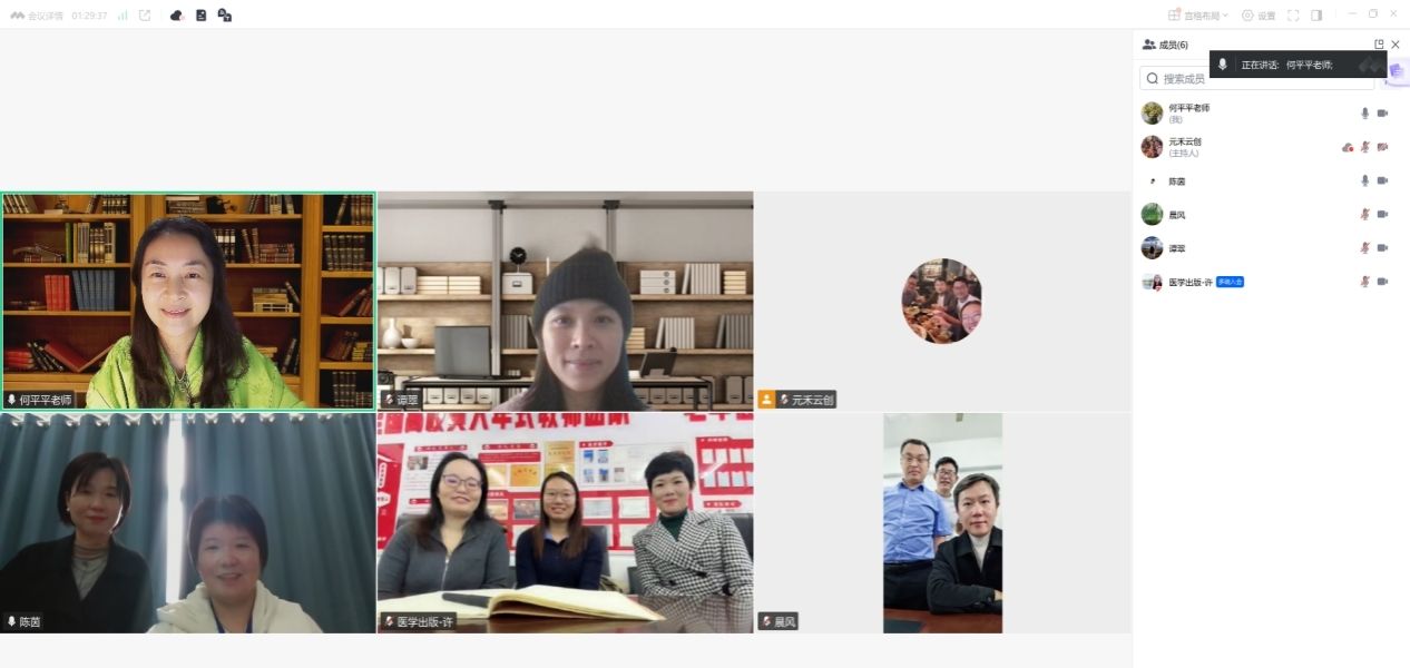 本次会议由第二主编岳阳职业技术学院陈茵主持。参会人员包括《护理学导论》编写组第一主编英国365集团何平平、副主编常德职业技术学院米琪、娄底职业技术学院周娟、成都职业技术学院谭翠、编委岳阳职业技术学院孙静,技术组舟道云数字科技有限公司总经理李剑,以及科学技术文献出版社张晓坚、许艳等核心成员。