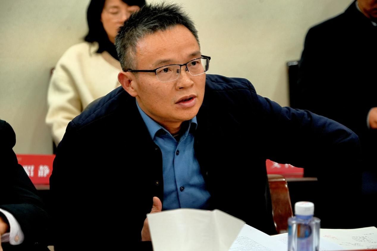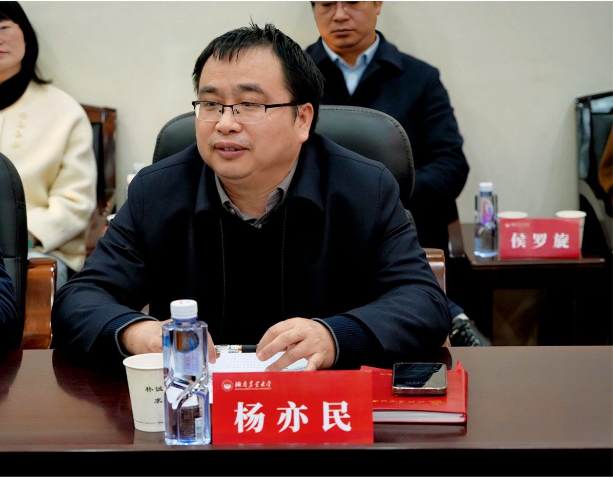 湖南农业大学商学院院长杨亦民作总结发言。他深情回顾了两校之间长期以来的深厚情谊,并运用“团结、传承、融合、创新、奋斗”五个关键词,精辟概括了商学院通过党建引领学科发展的实践感悟与核心追求。