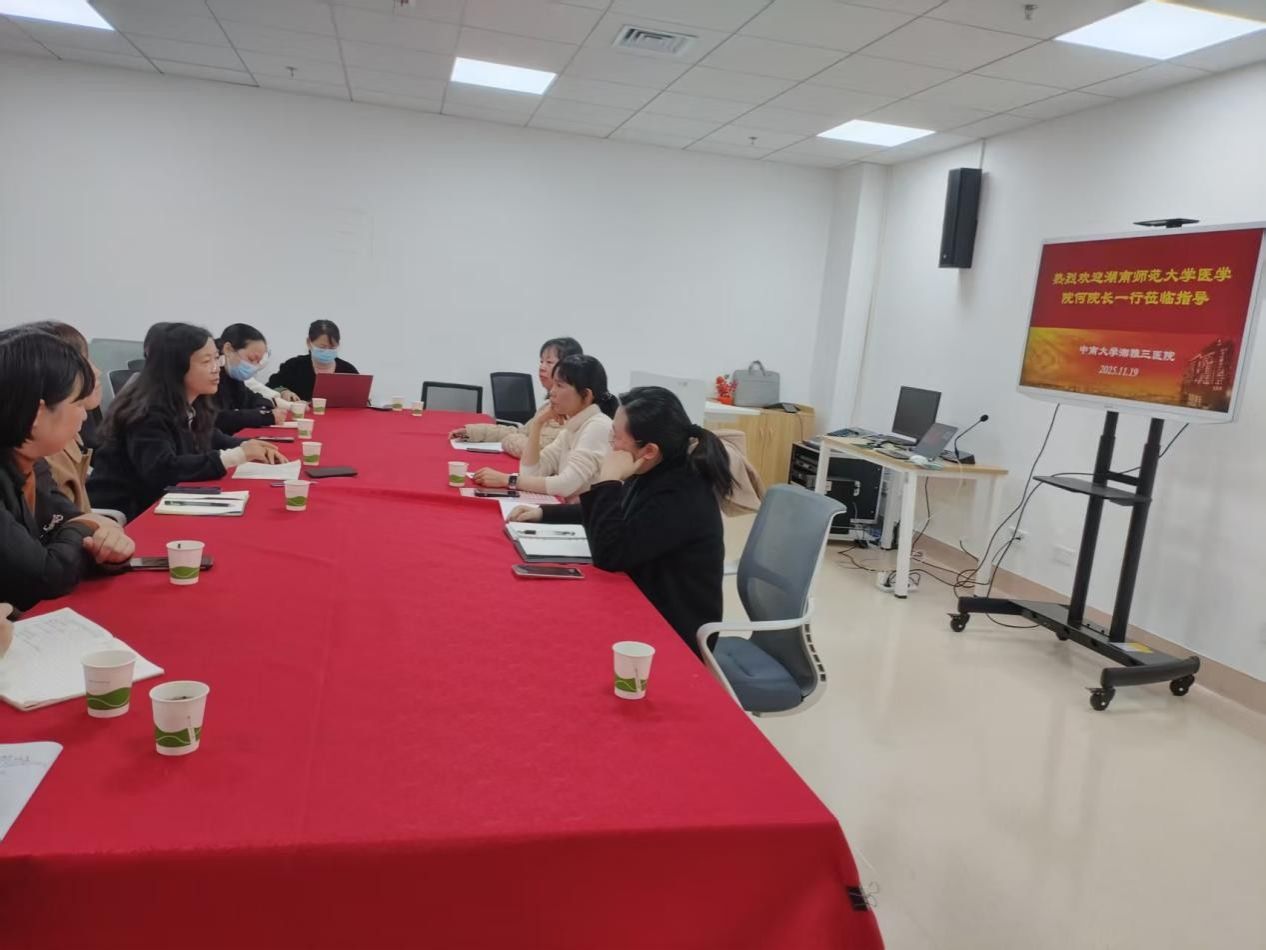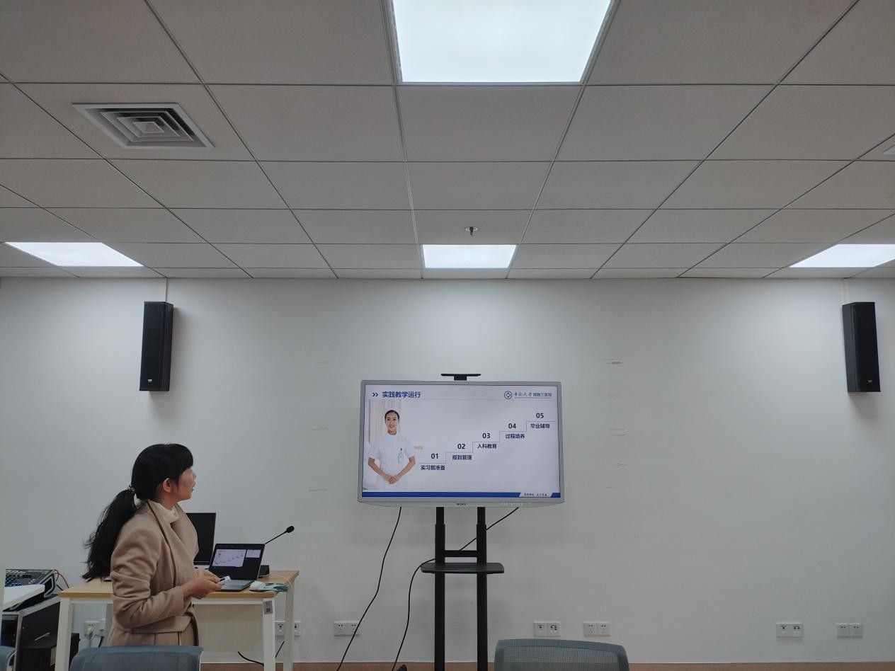 本次交流会议在湘雅三医院门诊楼日间照料中心示教室举行。会议由湘雅三医院教研室主任毛平主讲,她围绕临床教学、实习带教与实习生管理等核心环节,系统而详尽地介绍了该院的特色做法与亮点经验。作为重要的附属医院,湘雅三医院始终坚持“全方位育人”理念,构建了科学完备的实践教学体系。该体系涵盖了从“实习前准备”、“入科教育”,到“过程培养”、“毕业辅导”的全链条,并积极组织各类学生活动,促进实习生综合素质的提升。同时,医院对临床师资的培训与管理极为严格,确保了带教质量的高水平与同质化。