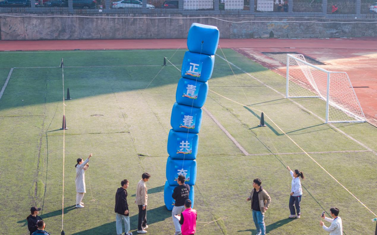 赛场上,欢声笑语与加油呐喊交织成一曲动人的青春乐章。在“运转乾坤”项目中,师生队员们一同手握把手,托举起巨型道具,以一致的步调向前冲刺。“激情方块”场地上,不仅学生们凝神投掷,老师们也跃跃欲试,一展身手,引来阵阵喝彩。 在“龙行龘龘”项目里,更有师生共同跨坐在充气“龙舟”上,喊着整齐的号子,协同前行,成为了赛场上一道亮丽的风景线。 此外,在考验稳定与配合的“趣味颠球”和充满欢笑的“趣味连体裤”接力赛中,师生们亲密无间的合作与互动,将现场气氛一次次推向高潮。