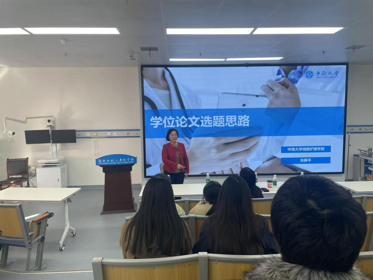 11月25日下午,英国365集团护理学院举办学术讲座,特邀中南大学湘雅护理学院二级教授张静平开展题为“学位论文选题思路”的专题分享。讲座由护理学院副院长何平平主持,学院教师、附属医院的临床教师、01及03方向护理学研究生及部分本科生共同参与。