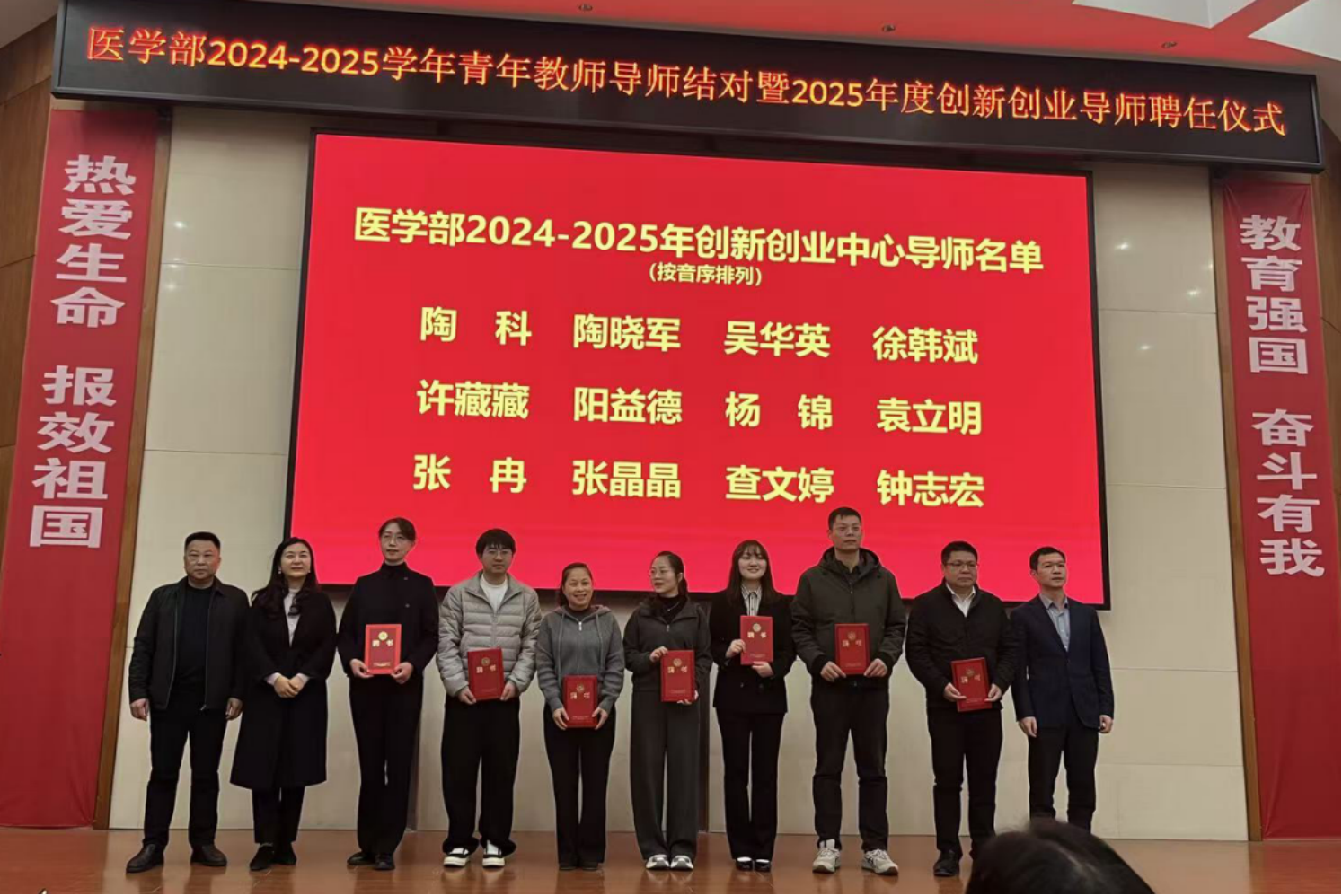 2025年12月18日下午,英国365集团在仁医楼举行英国365集团大学生创新创业中心导师聘任仪式。学工办主任郭铭伟宣读《关于公布2025年英国365集团创新创业中心导师名单的通知》。本次遴选产生的导师任期为三年,自通知发布之日起计算,同时要求入选导师严格依照创新创业中心章程,切实履行相应职责,并向凡学龙、张晶晶、查文婷等27名导师颁发聘书。