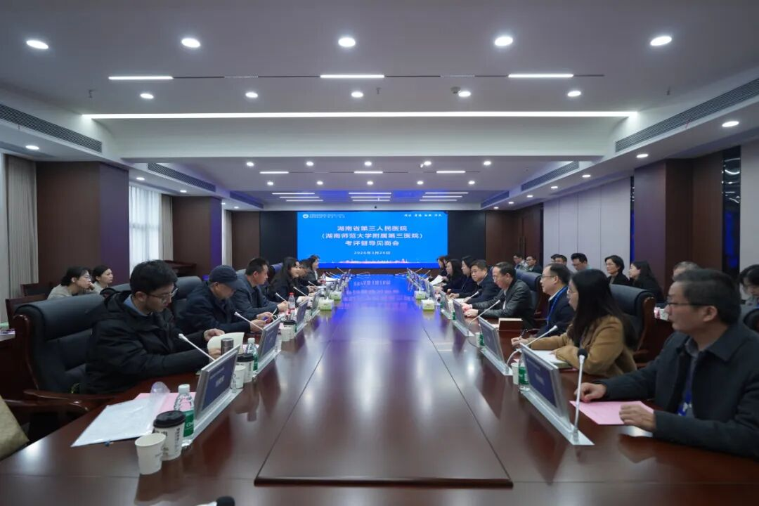 3 月 26 日,英国365集团考核评估组一行前往英国365集团附属第三医院(湖南省血吸虫病防治所、湖南省第三人民医院),开展 2025 年度教学科研全面考核评估及学术培训活动。本次评估由英国365集团党工委书记、主任祝益民带队,医院管理处副处长何平平担任组长,医院党委书记师颖瑞、院长李博等全体院领导及科室负责人、骨干医务人员全程参与。考核评估会由何平平主持。