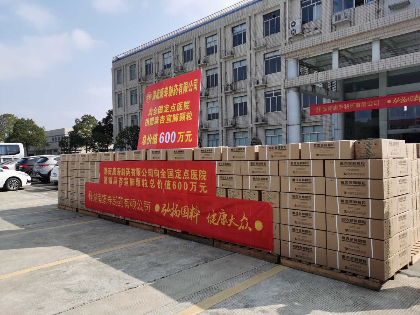 为支援打赢防疫攻坚战,2月9日,康寿制药向全国已联系的300多家定点医院定向捐赠价值600万元的麻杏宣肺颗粒,用于各定点医院新型冠状病毒肺炎疫情防治工作。