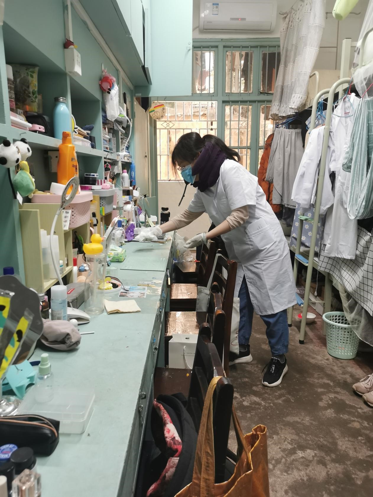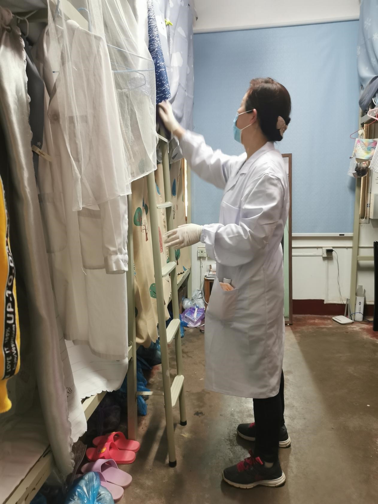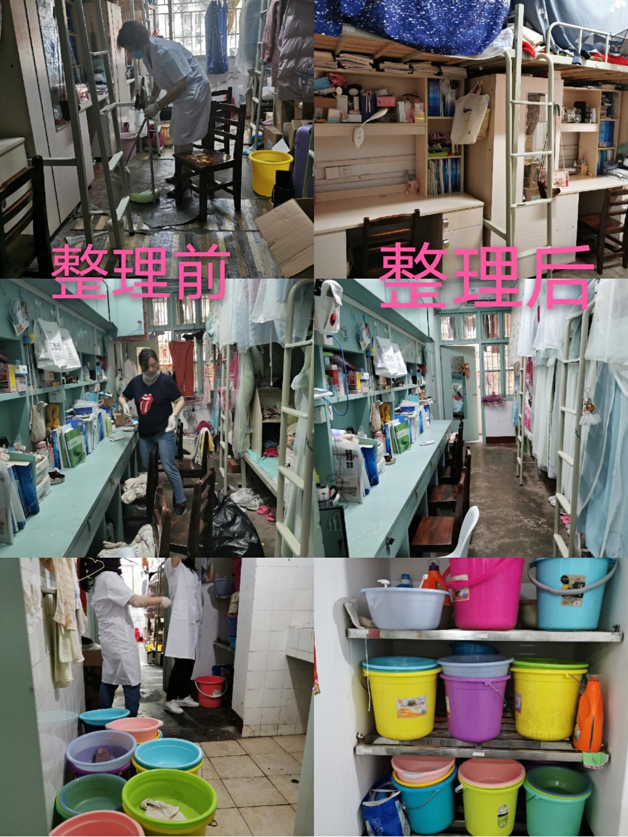 教务办王文老师自行克服腰椎和颈椎的病痛,头戴颈套还依然坚持奋斗在卫生一线,她说:“感觉是给自己的读大学的孩子整理房间一样,虽然身体很辛苦,但是心里感觉很安慰”。药学系潇湘学者、世承计划学科带头人杨小平教授参加活动后感慨地说:“这样的活动很有意义,不仅从安全卫生的角度确保了宿舍的使用,还给学生从心理层面带来了温暖,体现了我院对学生的关心和老师对学生的关爱。”党员们纷纷表示,此次活动让大家更深刻地体会到身为共产党人,为学生办实事、办好事、解难事的重要意义,强化了党性意识和奉献精神。