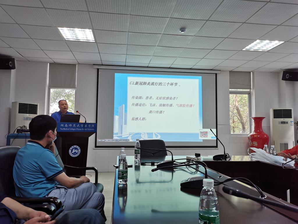 5月26日上午,为做好学生返校及复课后的疫情防控工作,提高学生自身应对新冠疫情肺炎的防控能力,我院为返校师生开设开学第一课,请湖南省疾病预防控制中心任消毒与感染控制科科长、主任技师陈贵秋主讲:消毒及传染性重大疾病预防控制。长沙市疾控中心防控科科长袁国庆到场指导。副院长张坚松主持讲座。