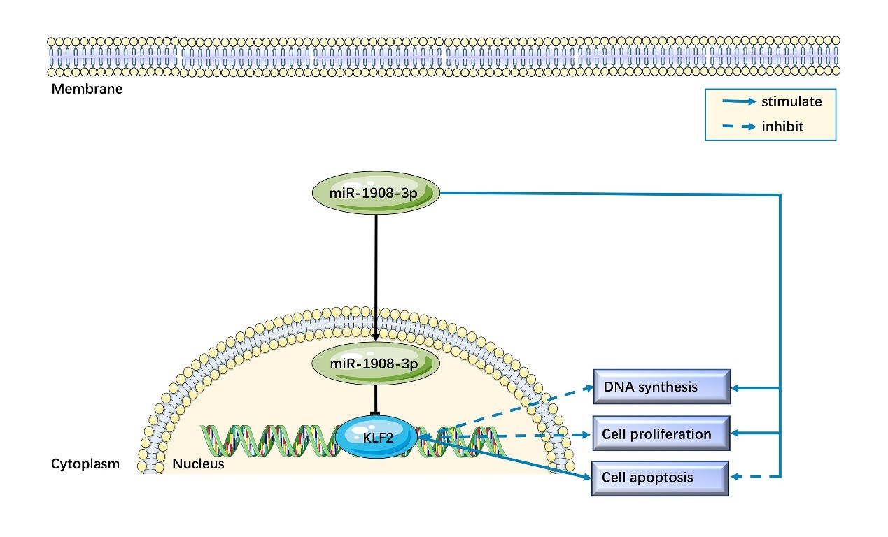 精子发生异常导致男性不育严重影响人类生殖与健康,正常的精子发生有赖于精原干细胞的表观遗传与遗传调控。非编码小RNA对人精原干细胞自我更新与凋亡的作用及其机理尚未完全明确。何祖平教授研究团队多年来聚焦于生殖干细胞的基础研究与临床应用,特别是人精原干细胞的分子机制研究。RNA深度测序显示,hsa-miR-1908的表达水平在人精原细胞显著高于粗线期精母细胞,结合细胞生物学与分子生物学技术,该研究团队首次发现,hsa-miR-1908-3p通过靶向KLF2来调节人精原干细胞的自我更新与凋亡。该研究为人类精原干细胞的命运决定和人类精子发生提供了新的表观遗传调控机理,对治疗男性不育和预防子代出生缺陷有重要意义。