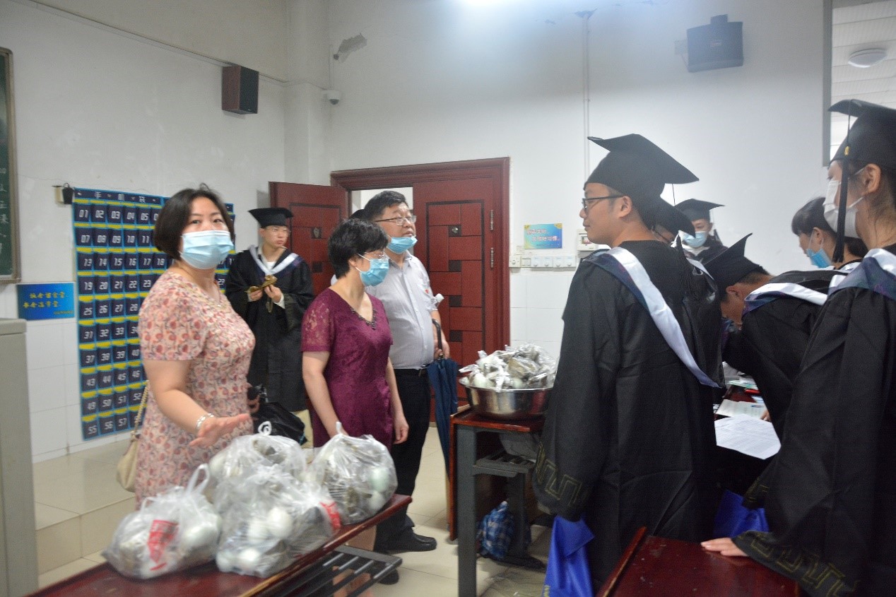 受疫情影响,返校复学的研究生、大三学生和部分毕业生无法回家与家人团聚共度端午佳节。为了让在校学生感受到节日的气氛以及学校的温暖,我院领导和老师走进教室和寝室,询问同学们近期学习和生活的情况,送上精选的粽子和咸鸭蛋。