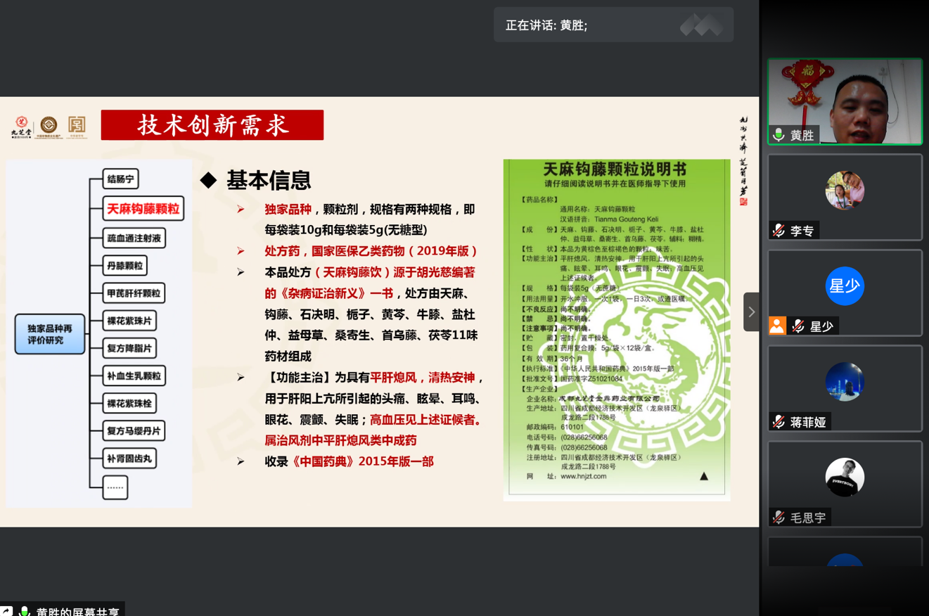 7月1日晚,九芝堂股份有限公司研发部黄胜主任应邀请为药学系师生讲座“企业产业技术创新现状与需求”。药学系部分老师和全体研究生参加,讲座由药学系主任冯星主持。