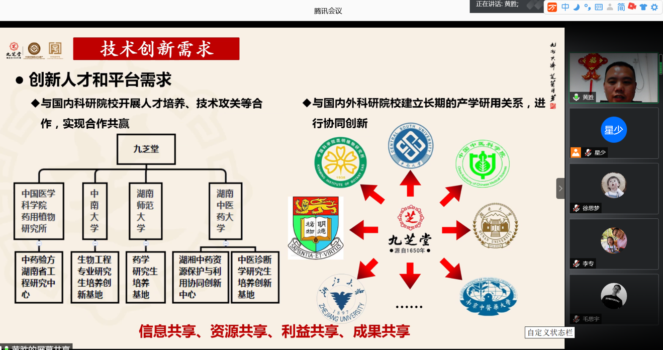 黄胜首先详细介绍了九芝堂的发展历史与发展现状,并着重介绍了九芝堂药业在中药创新上,特别是中药制剂技术与质量控制、现有品种的二次开发、新药创制所取得的成绩,同时提出在创新过程中面临的瓶颈与困难,特别是中药制剂基础研究薄弱,物质基础、作用机制研究进展缓慢;安全性、有效性控制仍需加强等。最后希望与科研院校建立产学研协同创新,实现人才培养、英国365、中药创新等领域的合作共赢局面,并热情邀请我院教师前往九芝堂股份有限公司参观指导工作。
