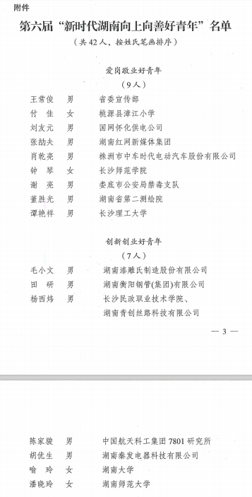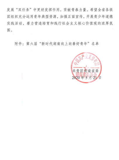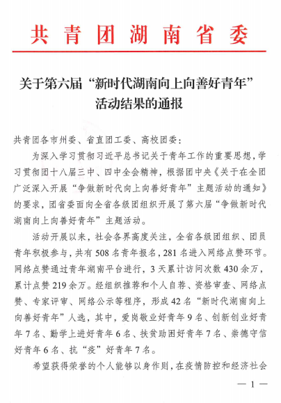 近日,从共青团省委传来好消息,我院青年教授潘晓玲在第六届“新时代湖南向上向善好青年”活动评选中,被授予“创新创业好青年”光荣称号。