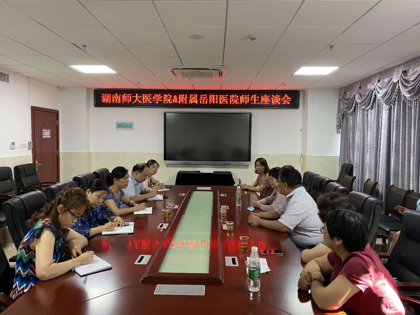 8月15日,我院党委书记鄢朝晖、党委副书记陈松以及学工办全体辅导员赴附属岳阳医院看望见习实习学生。附属岳阳医院副院长刘芳、科教科科长刘佳及见习实习班主任热情接待了我院领导一行。参加了本次座谈会。