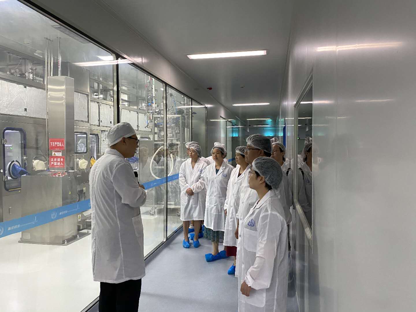 在座谈中,与会人员观看了公司相关视频,刘冬梅就企业情况进行了一个简要介绍。随后,一行人来到生产车间参观制药生产线,生产经理廖国栋、胡继猛详细为大家讲解技术特色与主要产品。在全面参观完湖南科伦制药有限公司后,庞海河博士进一步向大家介绍公司的技术优势与未来发展方向,与我院领导进行相关讨论,双方就彼此情况进行深入交流。