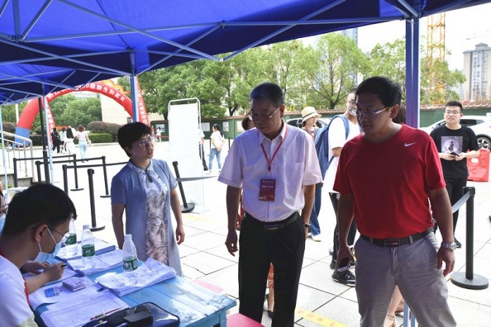 在全面视察我院迎新情况后,周俊武对我院迎新秩序井然、服务周到热情以及居住设备完善给予了肯定,对迎新工作人员的辛勤付出表示感谢。
