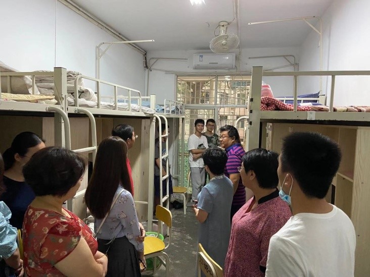 随后,我院领导和全体辅导员下到宿舍进行检查,了解新生入住情况,与学生们交谈学习与生活情况,充分了解学生需求,以便更好地服务于学生。